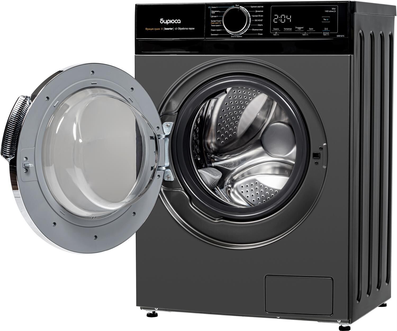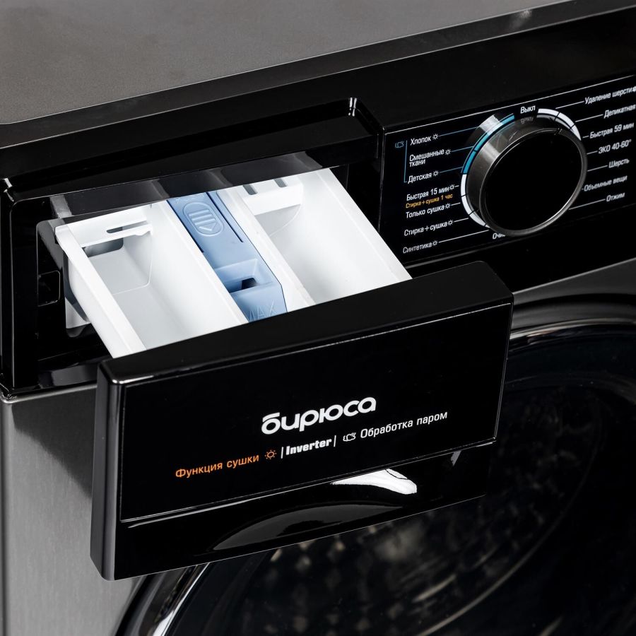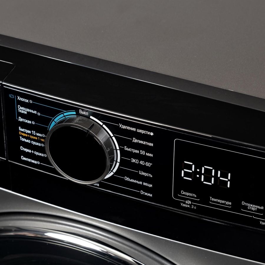 Габариты ВхШхГ: 85х59,5х54; Загрузка: 8кг стирка, 6 кг сушка; Цвет: Темный металлик; Тип двигателя: Инверторный; Тип управления: LED дисплей; Тип загрузки: Фронтальная; Объем барабана, л: 52,7; Уровень шума в режиме Стирка: 56 дБ; Уровень шума в режиме Отжима: 78 дБ; Диаметр люка: 33; Расход воды за цикл: 48л; Класс энергоэффективности: А; Максимальная скорость отжима: 1400 об/мин; Дисплей; Выбор температуры стирки; Обработка паром; Защита от детей; Самоочистка барабана; Таймер отсрочки запуска; Количество программ: 16