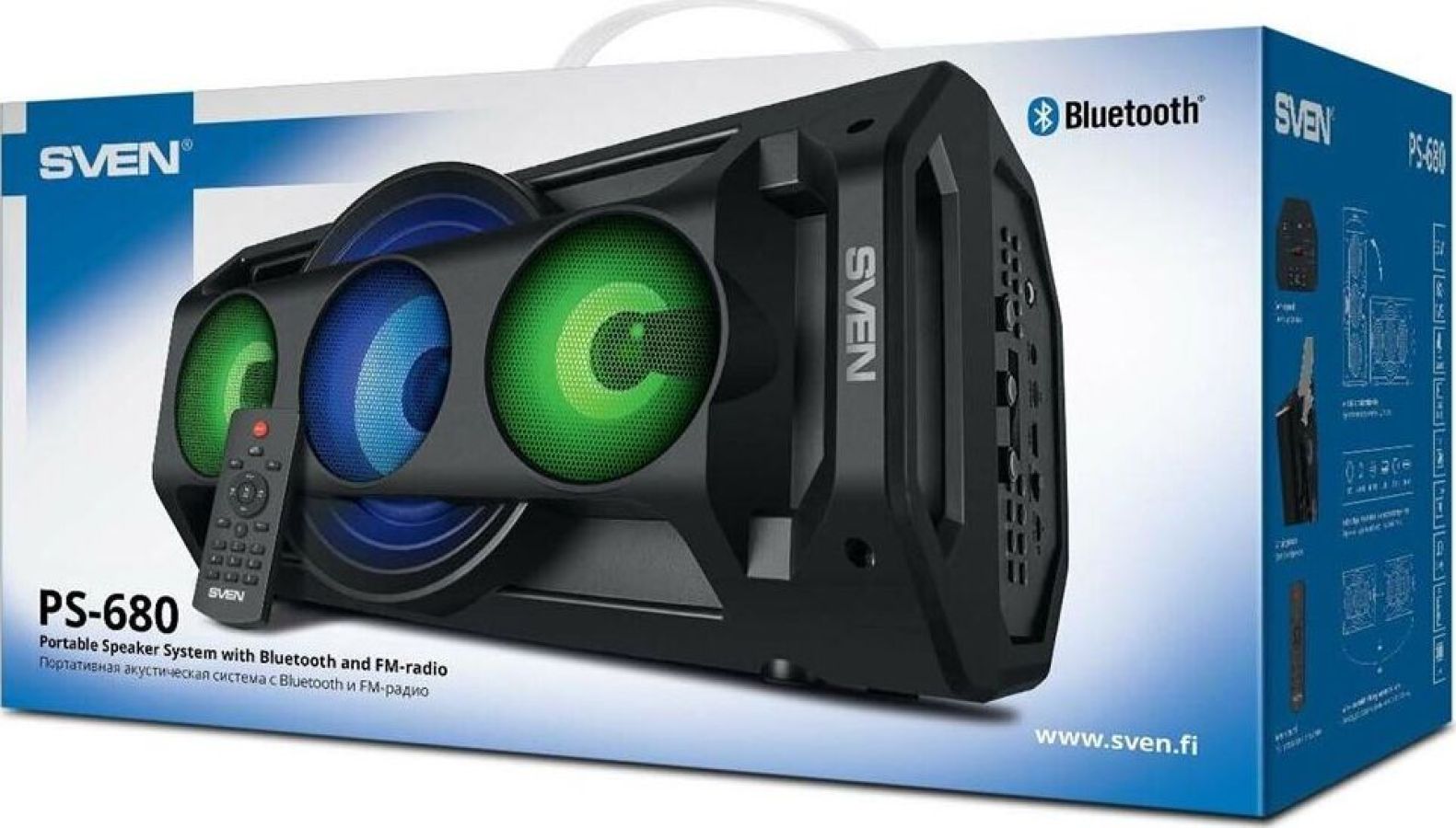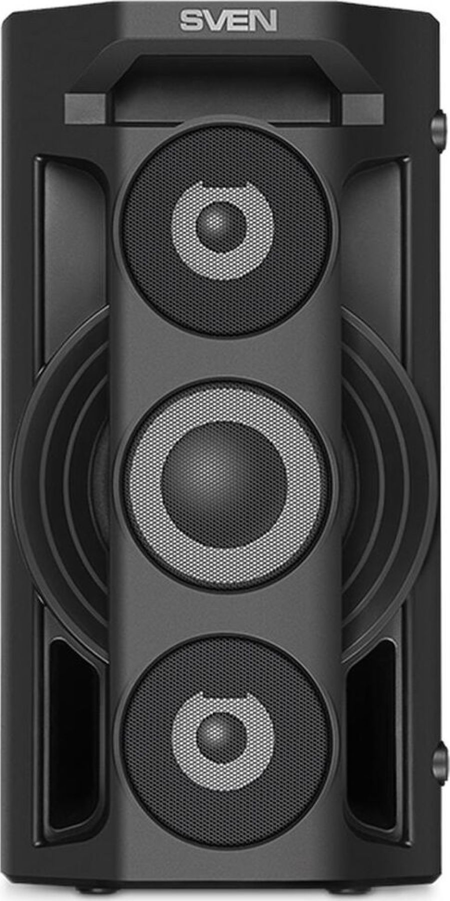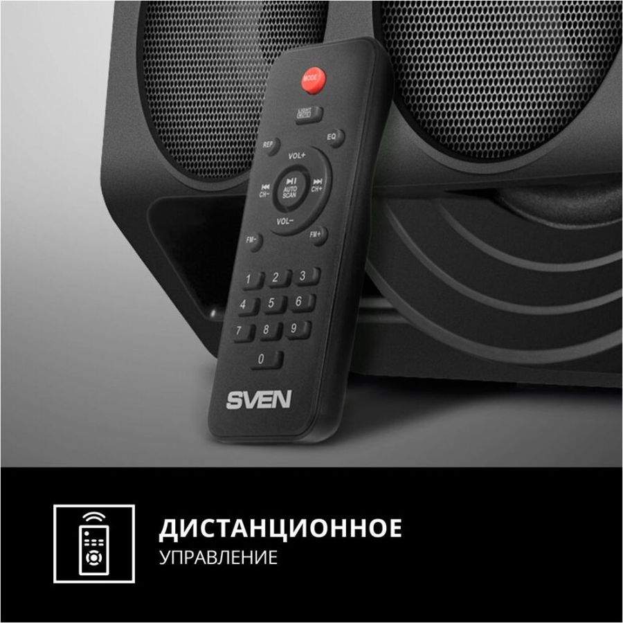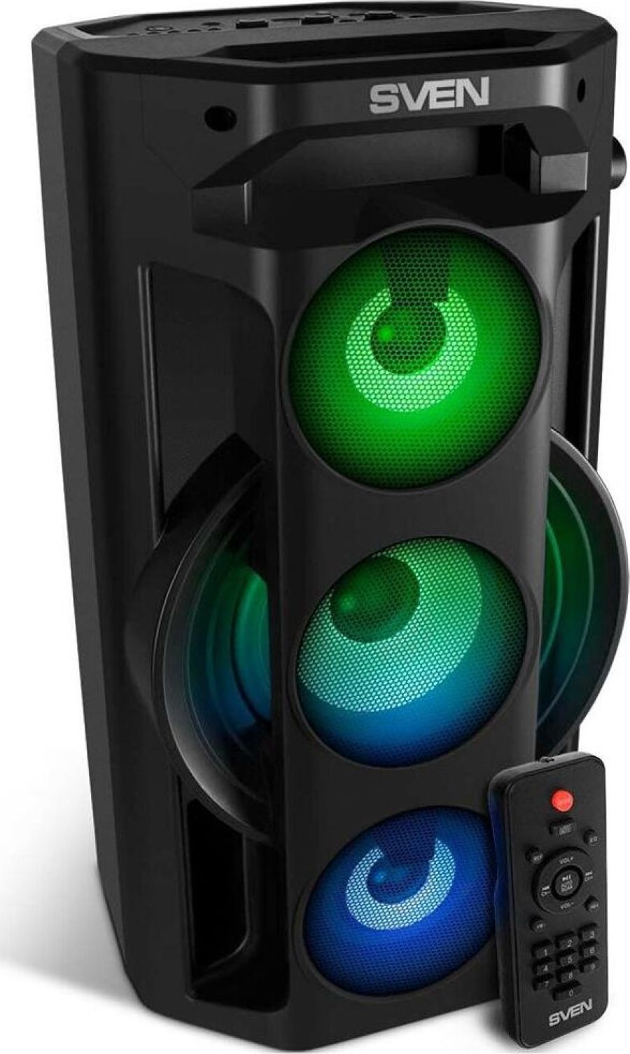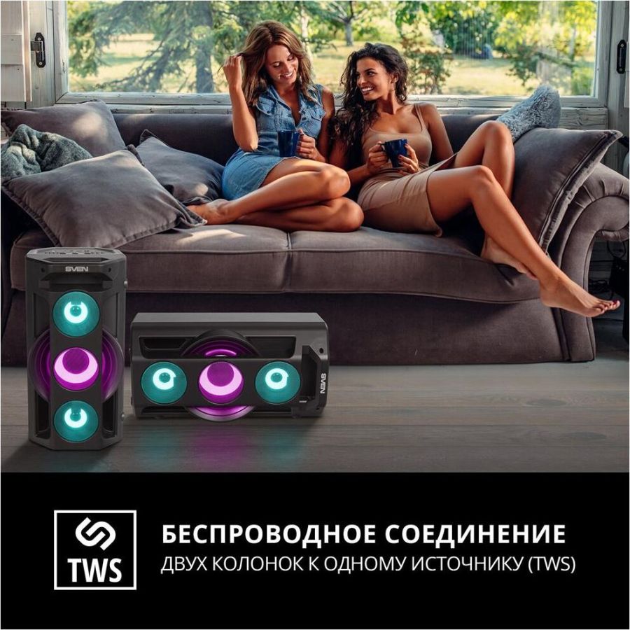 Многофункциональная портативная акустическая система с подсветкой, Bluetooth, LED-дисплей, встроенный эквалайзер, встроенное FM-радио, выходная мощность (RMS), Вт 65 (2 x 32.5), частотный диапазон, Гц 45 – 22 000, диапазон частот тюнера, МГц - 87.5 – 108, размеры динамиков, мм - ВЧ: O 70, НЧ: O 140, воспроизведение музыки с носителей памяти USB, microSD, источник питания литий-ионный aккумулятор: 4400 мA · час (2 шт.) / USB: DC 5 V, тип соединения Bluetooth, проводной, радиус действия, м - до 10, размеры изделия, мм 470 х 240 х 240, вес - 4,35 кг.