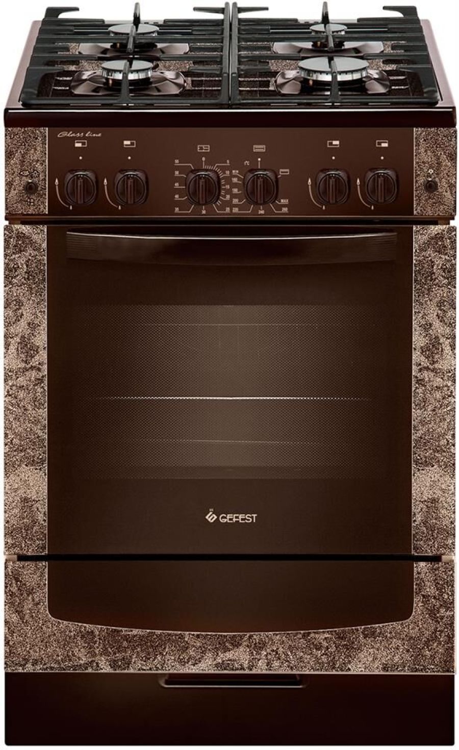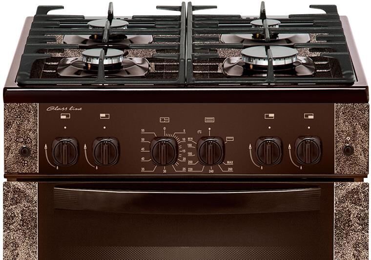 Габаритные размеры, ШхГхВ: 60x60x85 см Цвет: коричневый. Полезный объём духовки: 52 л Вертел с электроприводом,Выдвижной ящик, Газ-контроль духовки, Гриль-горелка газовая, Исполнение без крышки, Ножки регулировочные, Подсветка духовки двойная, Проволочные направляющие, Таймер механический, Терморегулятор (термостат),Электророзжиг горелок, кнопка розжига на панели, Электророзжиг духовки, кнопка розжига на панели Варочная поверхность: стеклянная