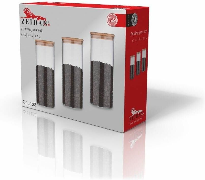 Набор банок для хранения ZEIDAN Z-11123 3 предмета , Набор банок для хранения, 3 предмета (3х1700 мл), корпус из высококачественного боросиликатного стекла, крышка - бамбук, подарочная упаковка.