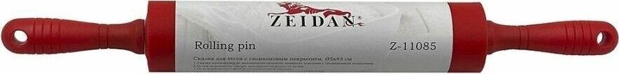 Скалка для теста ZEIDAN Z-11085 красная, Скалка для теста d 5х43 см (рабочая поверхность 25 см) из высококачественного пищевого пластика с силиконовым покрытием, подвижными ручками.
