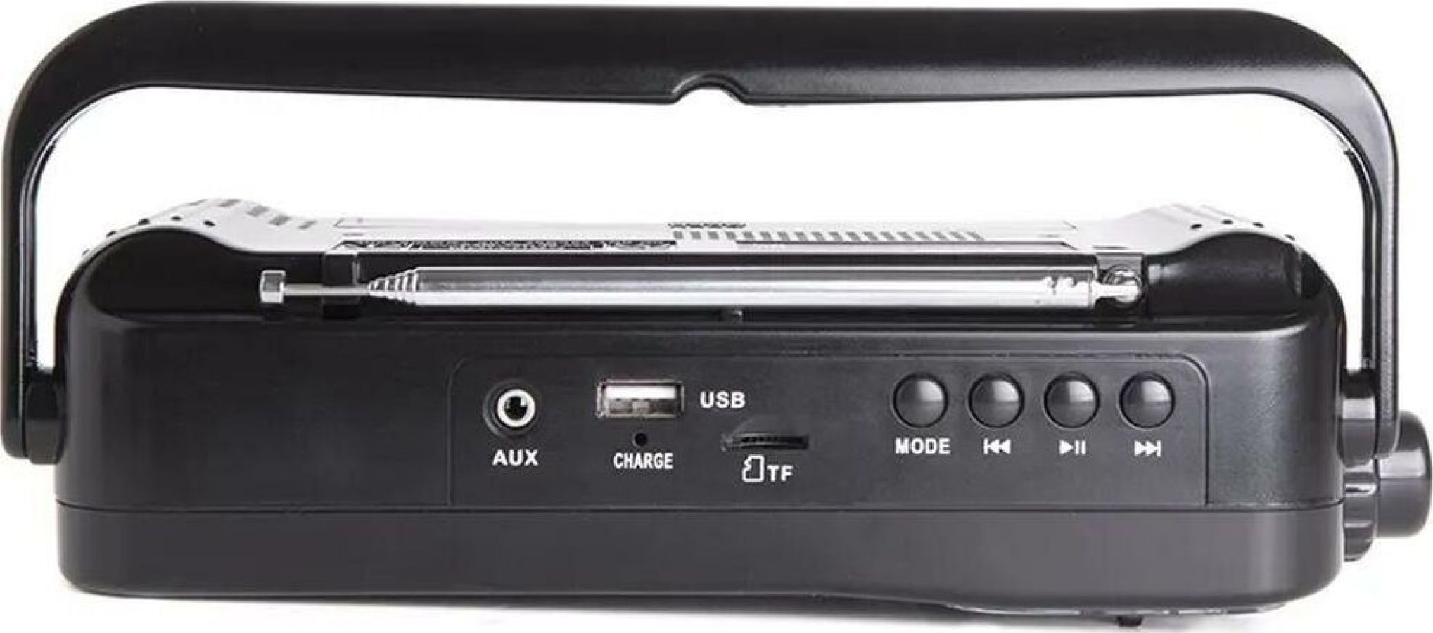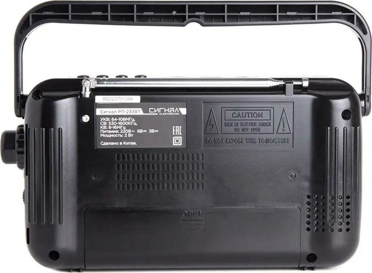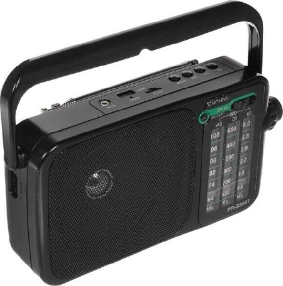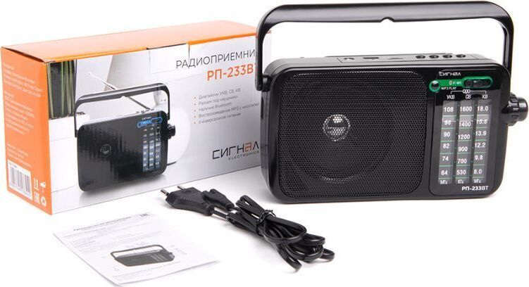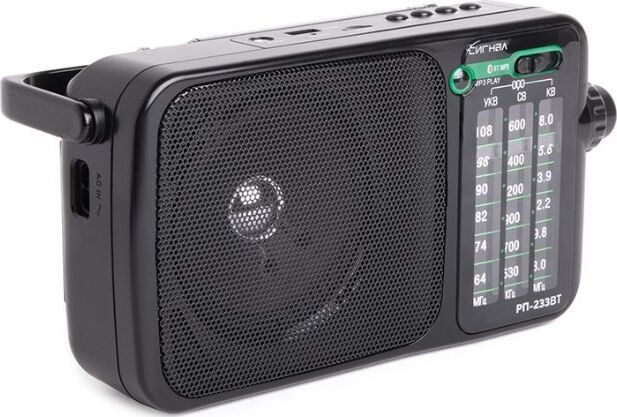 Аналоговый тюнер. УКВ/СВ/КВ диапазоны ( УКВ 64-108МГц СВ (530-1600)КГц КВ 8-16МГц), кол-во динамиков 1шт, монозвучание, динамик мощностью ?89MM/8Ом/5W, питание 220V, батарейки R20*2шт, не в комплекте, вluetooth версия 4.2, возможность прослушивания с USB, возможность прослушивания с micro SD, возможность регулировки басов, размер 235x120х80мм.