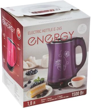 Объем чайника (Л) 1,7. Мощность (Вт) 1800-2000. Двойные стенки Да. Тип нагревательного элемента Закрытый. Отключение при отсутствии воды Да. База с поворотным контактом Да. Шкала уровня воды Да, внутри чайника. Чайник Да. Подставка со шнуром питания и отсеком для его хранения Да.