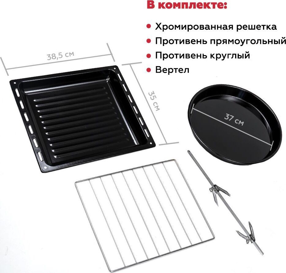 Мощность 1500(Вт),Объем 38(Л),Напряжение 220-240(В),Максимальная температура 320(°С),Внутренняя подсветка,Конвекция,Вертел,Таймер отключения 90(Мин)