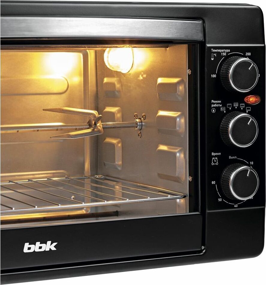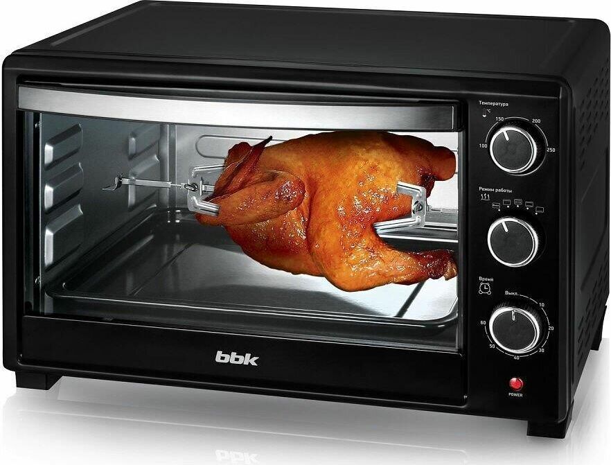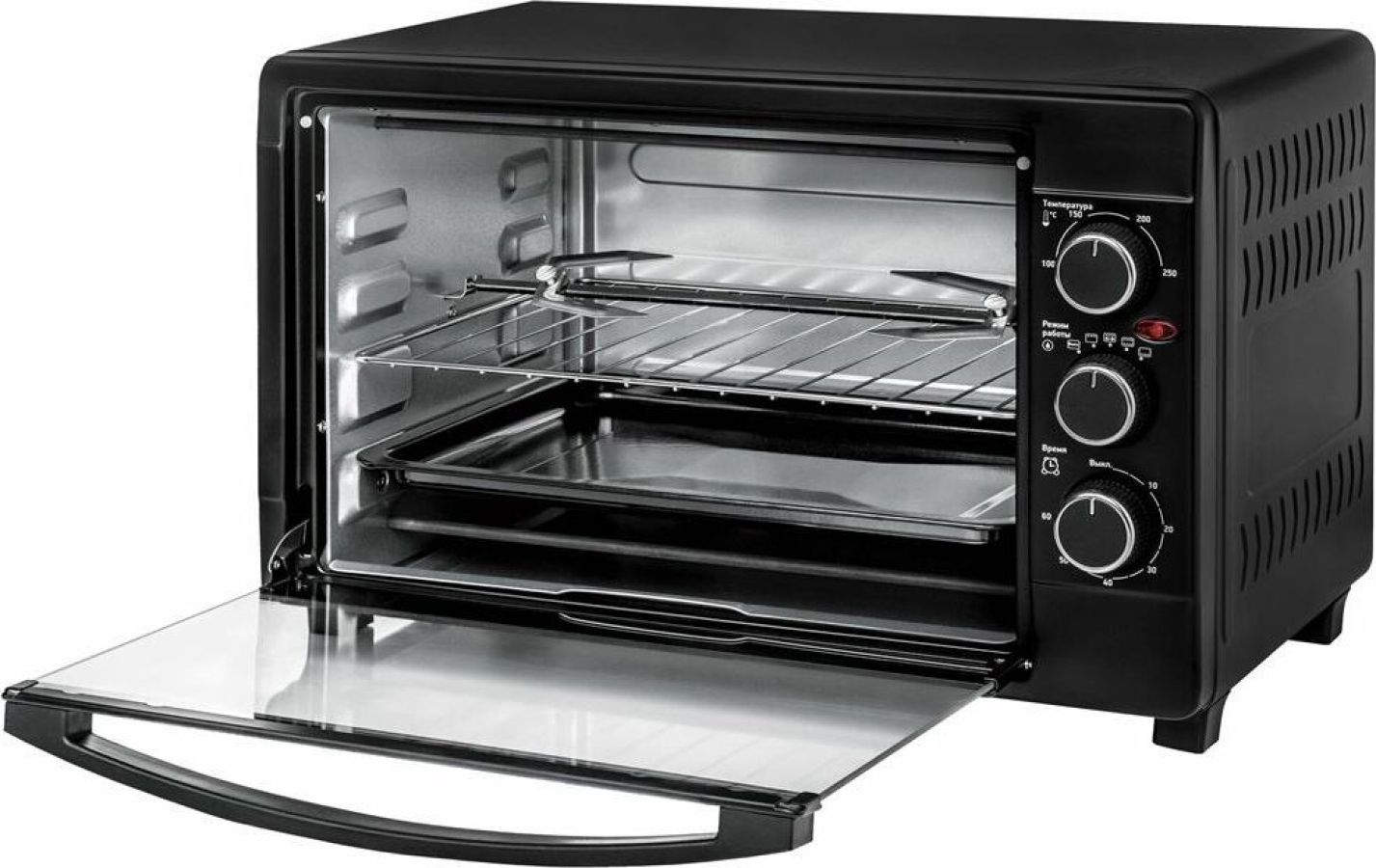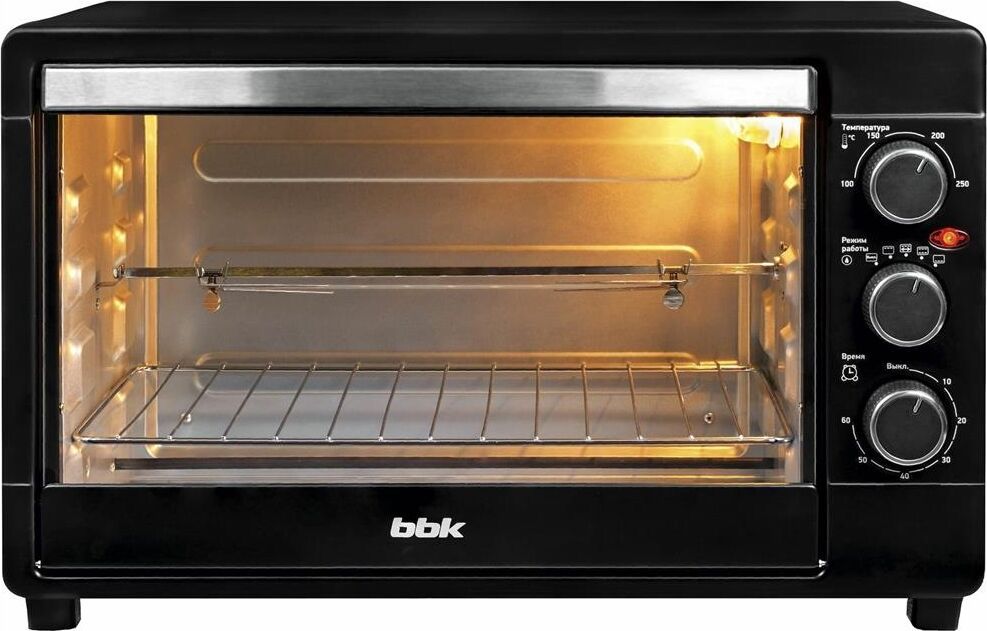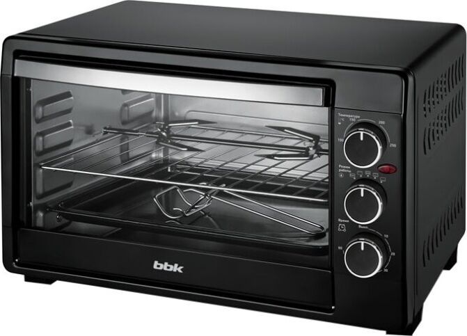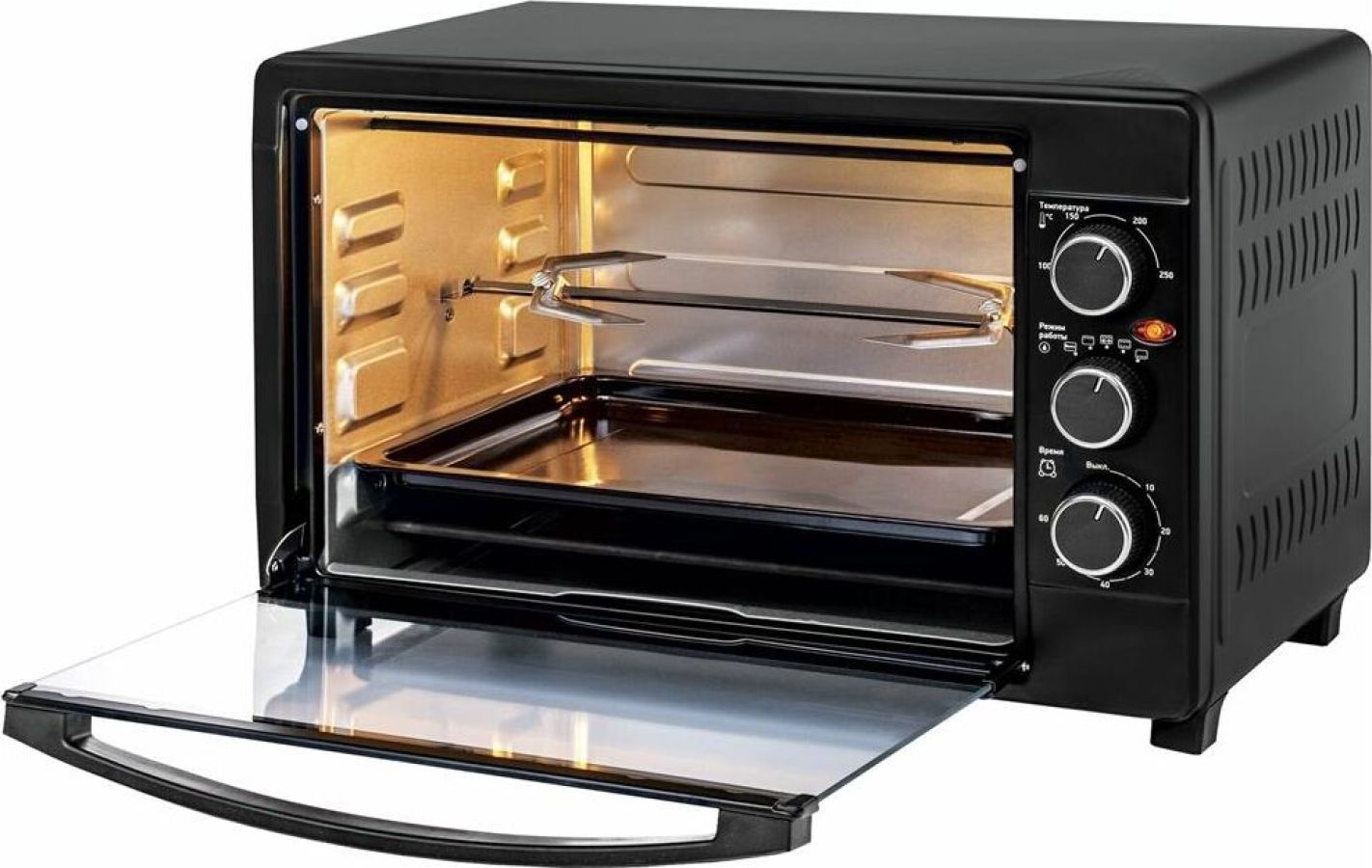 Объем 30 л. Количество режимов работы 4. Регулировка температуры духовки 100 - 250 °С. Тип управления механическое. Потребляемая мощность 1500 Вт.Световой индикатор . Таймер . Гриль . Съемная решетка в комплекте . Противень в комплекте . Вертел . Ручка для снятия вертела . Дополнительно в комплекте: Противень, решетка и ручка для противня, поддон для крошек, вертел, ручка для вертела.