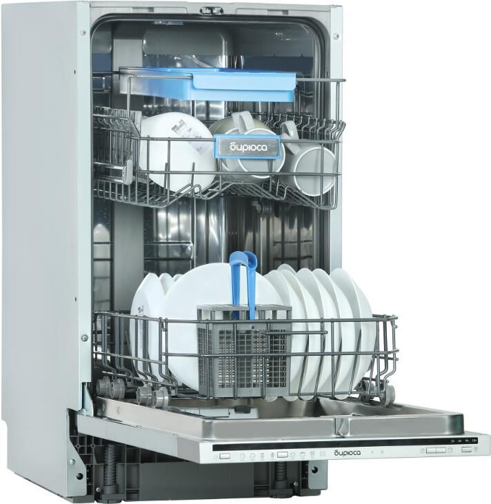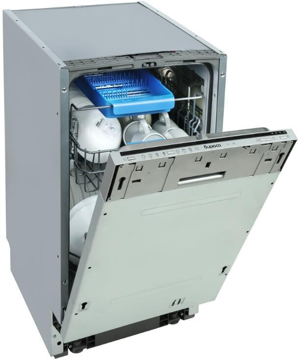 Узкая встраиваемая посудомоечная машина с лучом на полу; Габариты (ВхШхГ), см: 81,5+5х44,8х55,5; Вместимость: 10 комплектов посуды; Среднее потребление воды за цикл мойки: 11,2л; Тип управления: Кнопочное + LED индикация (Луч на полу); Количесвто корзин для посуды: 2; Количество корзин для столовых приборов: 2; Количество программ: 8; Система защиты от протечек: AquaStop; Количесвто уровней разбрызгивания воды: 3; Расход электроэнергии за цикл мойки, кВт/ч: 0,740; Потребляемая мощность, Вт: 1920; Класс энергоэффективности: А++; Класс энергоэффективности сушки: А; Уровень шума, дБа: 49