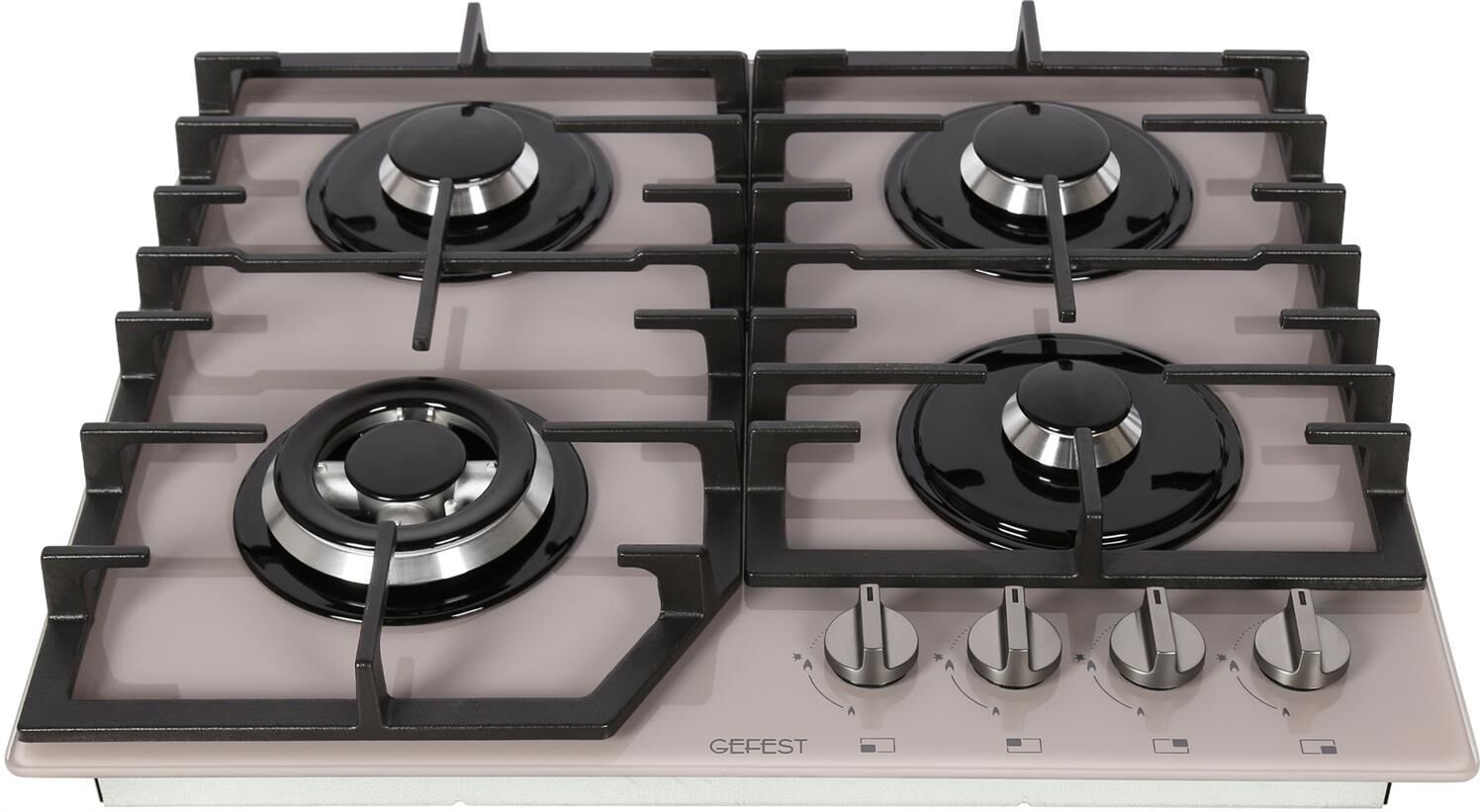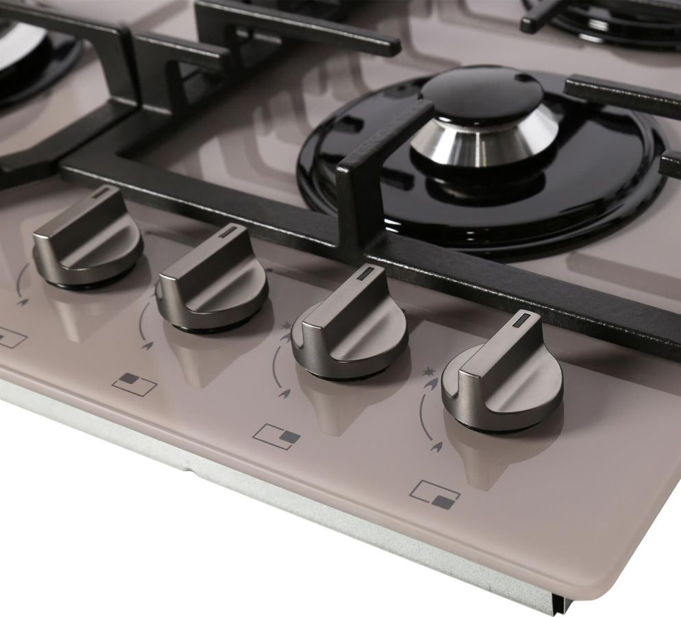 Варочная газовая панель. Габариты Ш/Г/В 60/52,5/10 см. Тип подключения газовый. Цвет модели Тауп. Материал варочной поверхности стекло. Материал решеток варочной поверхности чугун. Двухзонная горелка варочной поверхности. Газ-контроль горелок стола. Электророзжиг горелок стола встроен в ручки. Диапазон номинального напряжения сети, В220-230. Масса (нетто/брутто), кгне более 13,5. Номинальная частота сети, Гц50. Размеры монтажного проема, ШхГ, см55,4 х 48,6. "Фиксированное положение ""малое пламя"". Комплект сменных сопел. Накладка для посуды малого диаметра. Решетка варочной поверхности 2 шт. Уплотнительная лента. Фильтр.