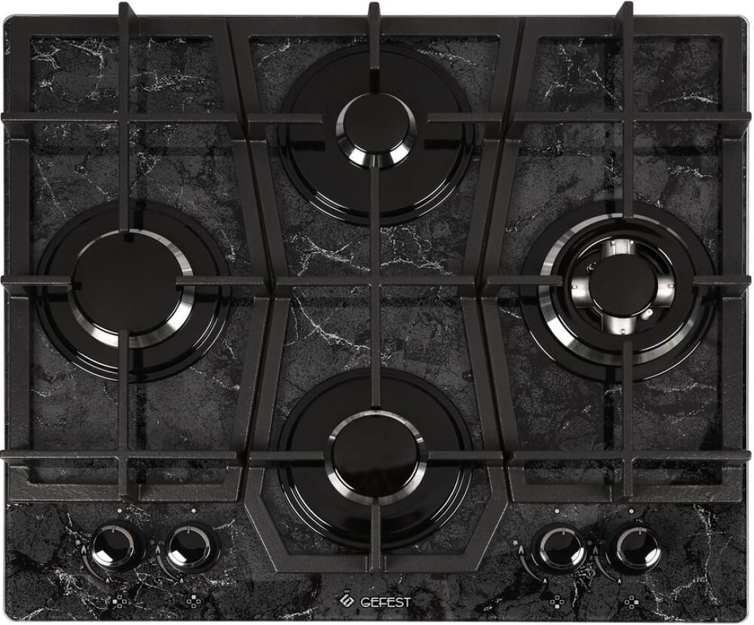 Размеры монтажного проема, ШхГ, см 55,4 х 48,6/ Ширина, см 60/ Глубина, см 52,5/ Высота, см 10/ Цвет модели Черный/ Дизайн Мрамор/ Материал варочной поверхности Стекло/ Материал решеток варочной поверхности Чугун/ Газ-контроль горелок стола/ Электророзжиг горелок стола Розжиг встроен в ручки/ Двухзонная горелка варочной поверхности
