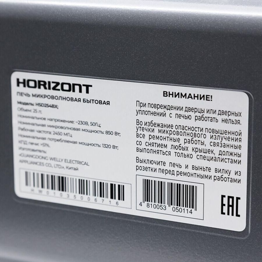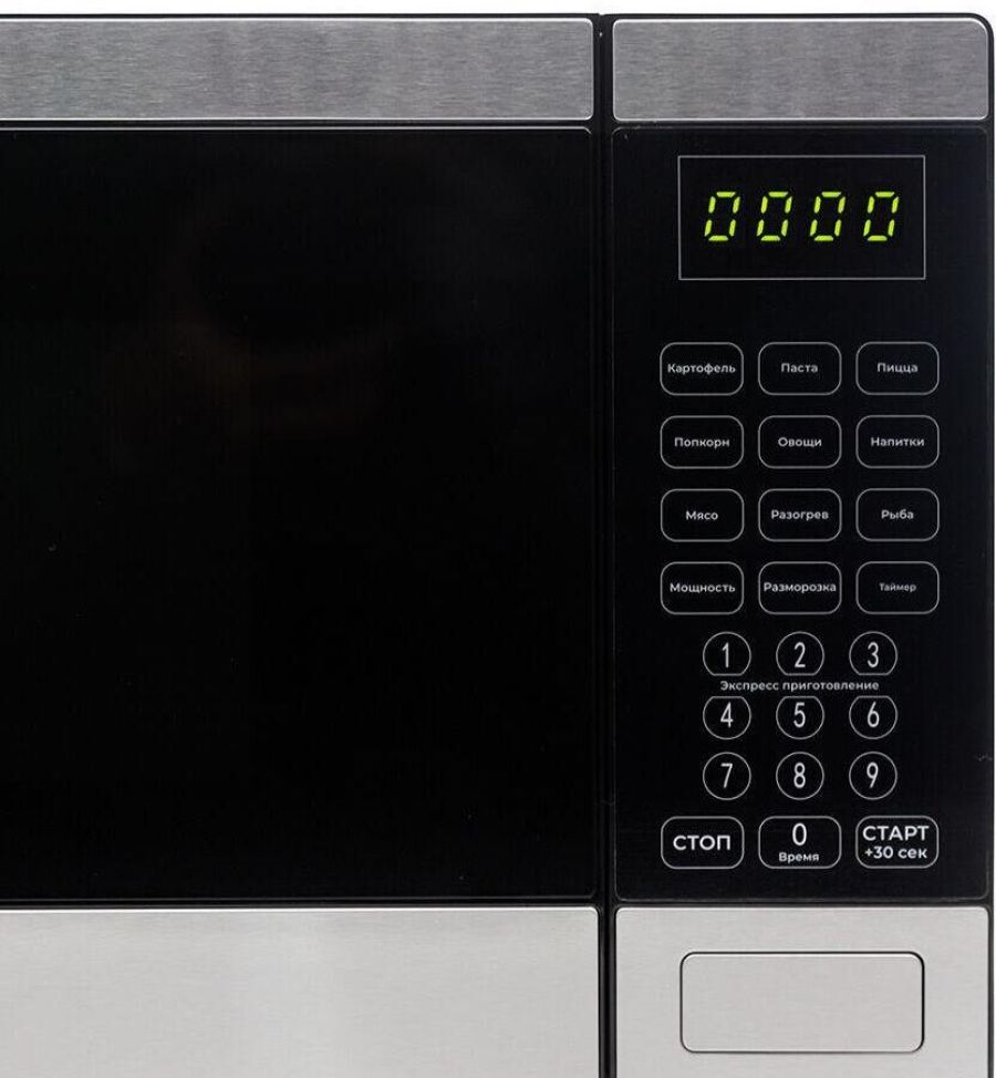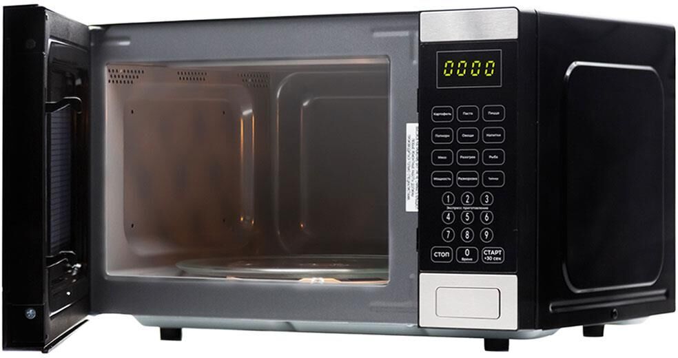 25 Литра, цвет - черный/серебро, мощность 850W, 8 автопрограмм, 5 режимов мощности, функция разморозки по весу, быстрый старт, таймер. Сенсорное управление