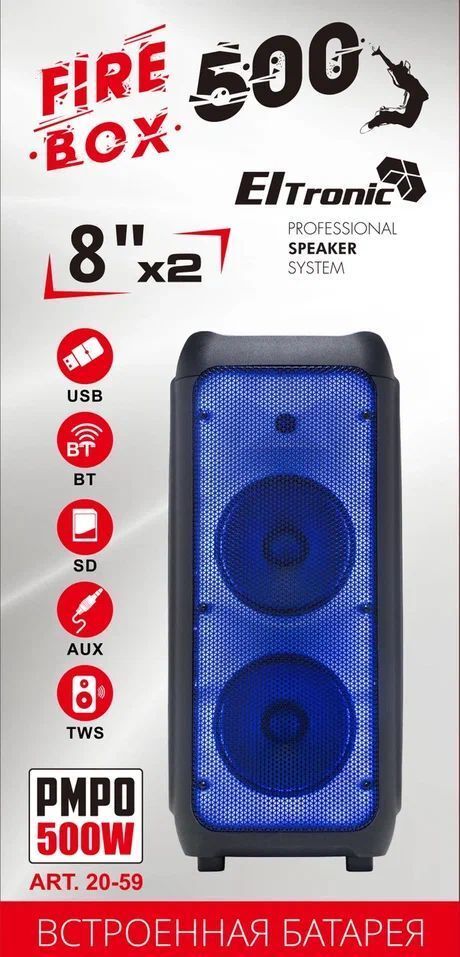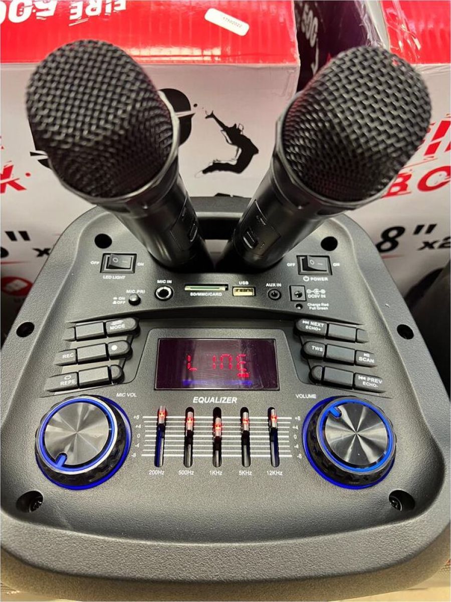 Акустическая колонка 2*8" динамика Режимы воспроизведения: - Bluetooth - Внешний накопитель - Aux - FM Мощность: - 500 Ватт PMPO - 50 Ватт RMS Питание: - Сеть 220V - Встроенный аккумулятор 7.4V 2200 mAh (до 5 часов работы) Разъемы: - USB - SD - Jack 6.3 мм (микрофон, гитара) 1 шт. Комплектация: - Пульт Д/У - Кабель питания - Инструкция - 2 Беспроводных микрофона Размер: Ширина - 34 см Высота -71 см Глубина - 30 см Дополнительно: TWS функция соединения двух колонок в акустическую систему через Bluetooth Дисплей Пульт Д/У Регулировка звучания микрофонов LED подсветка динамика (активная) Эквалайзер Возможность записи звука.