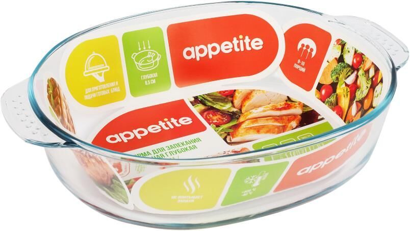 Толщина стенок и дна 4-5,5мм. Стеклянная форма ТМ Appetite выполнена из экологически чистого жаропрочного стекла и подходит для приготовления тушёных, томлёных, запечённых блюд, а также их разогрева. Стекло - самый безопасный для здоровья материал. Посуда
