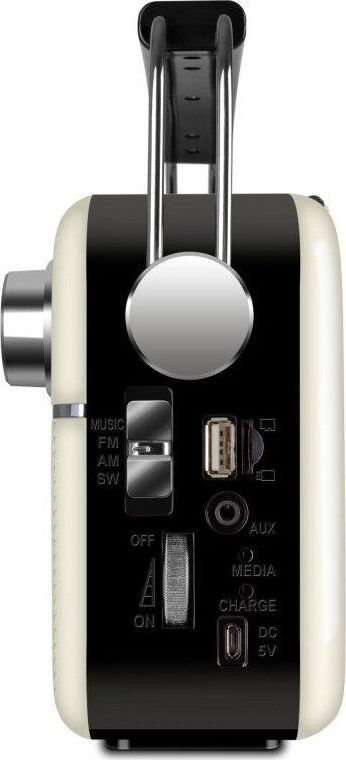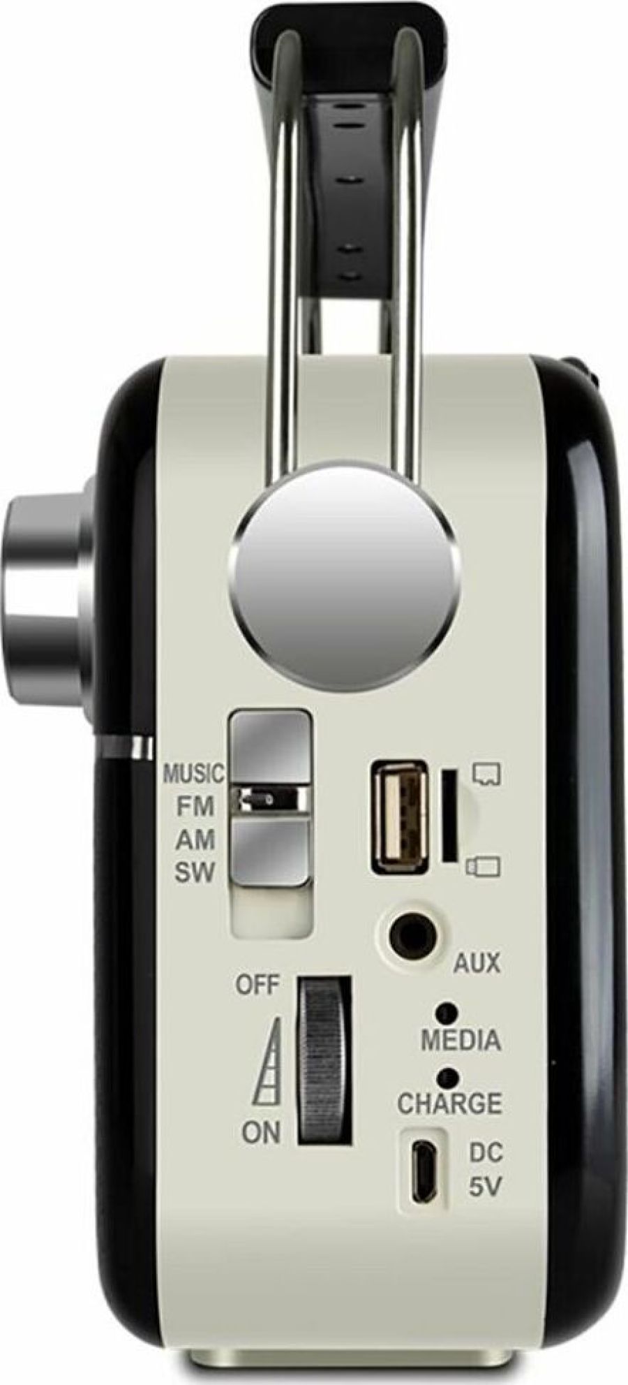 Портативная беспроводная акустическая система ,Bluetooth, выходная мощность (RMS) - 4Вт, частотный диапазон, Гц 100 – 12 000, размеры динамиков, мм - O 90, диапазон частот тюнера, МГц - 87.5 – 108, воспроизведение музыки с носителей памяти USB, microSD, источник питания - литий-ионный aккумулятор: 1200 мA · час, USB: DC 5 V, размеры изделия (мм) - 230х147х110.