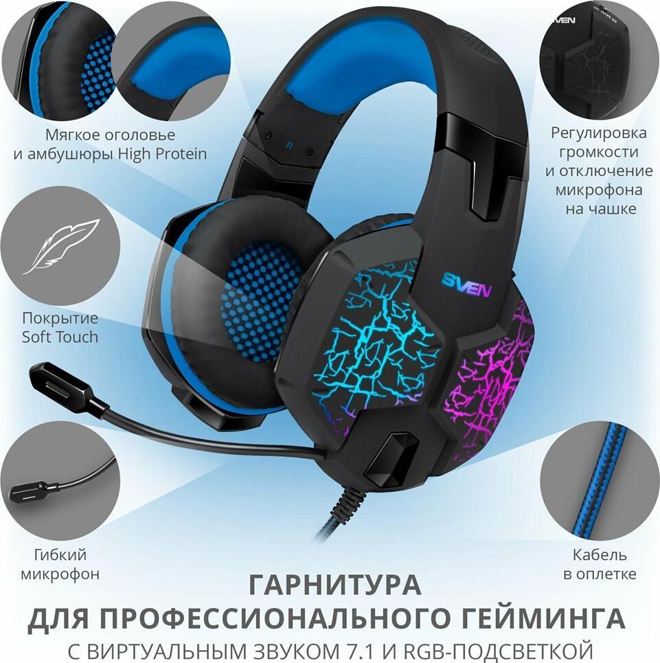 Геймерские наушники, чувствительность наушников, дБ 108 ± 3, чувствительность микрофона, дБ -58 ± 3, частотный диапазон наушников, Гц 20 – 20 000, частотный диапазон микрофона, Гц 30 – 16 000, мембрана, мм O 50, сопротивление, Ом 32, тип разъема - мини-джек (стерео) O 3,5 мм (4 pin) ,бъёмное звучание 7.1, динамическая подсветка, высочайшее качество звучания, длина кабеля - 2,2 м.