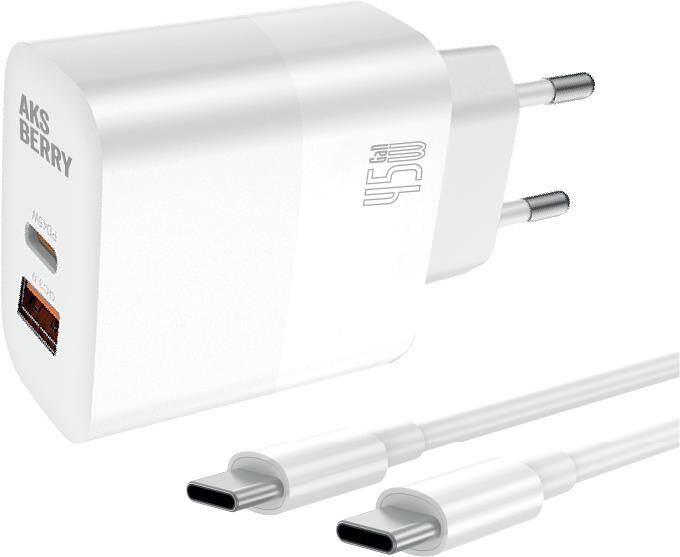 Сетевое ЗУ Aksberry T45 45W PD/QC3.0 + кабель type c (белый)
