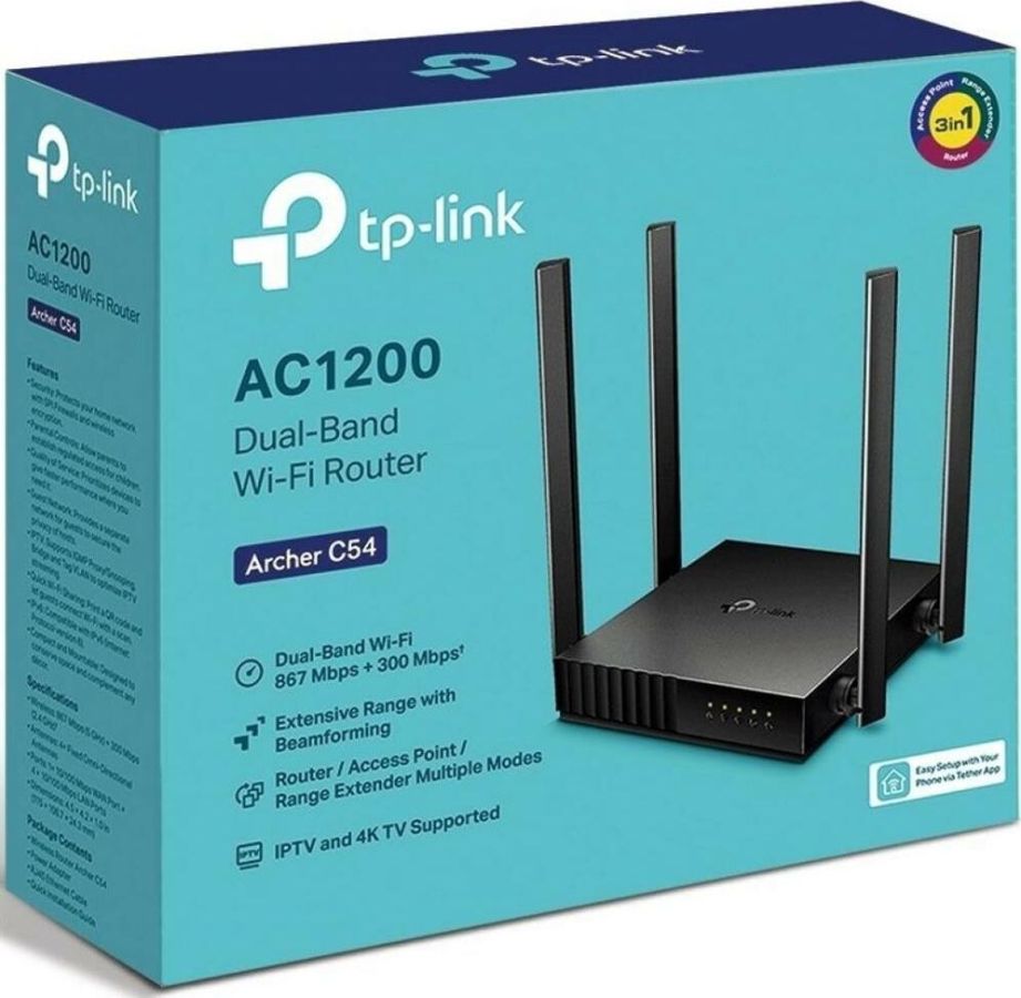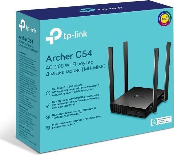 AC1200 двухдиапазонный Wi-Fi роутер. Скорость Wi-Fi до 867 Мбит/с на 5 ГГц и до 300 Мбит/с на 2,4 ГГц; Поддержка интернет-тарифов до 100 Мбит/с и 4 порта LAN 10/100 Мбит/с; Четыре внешние фиксированные антенны, поддержка MU-MIMO и Beamforming; Поддержка рабочих режимов Wi-Fi роутера, точки доступа и ретранслятора; Функции родительского контроля, приоритизации трафика и гостевой сети; Удобное управление с помощью мобильного приложения Tether; Поддержка IPTV и IPv6; Компактный размер корпуса.