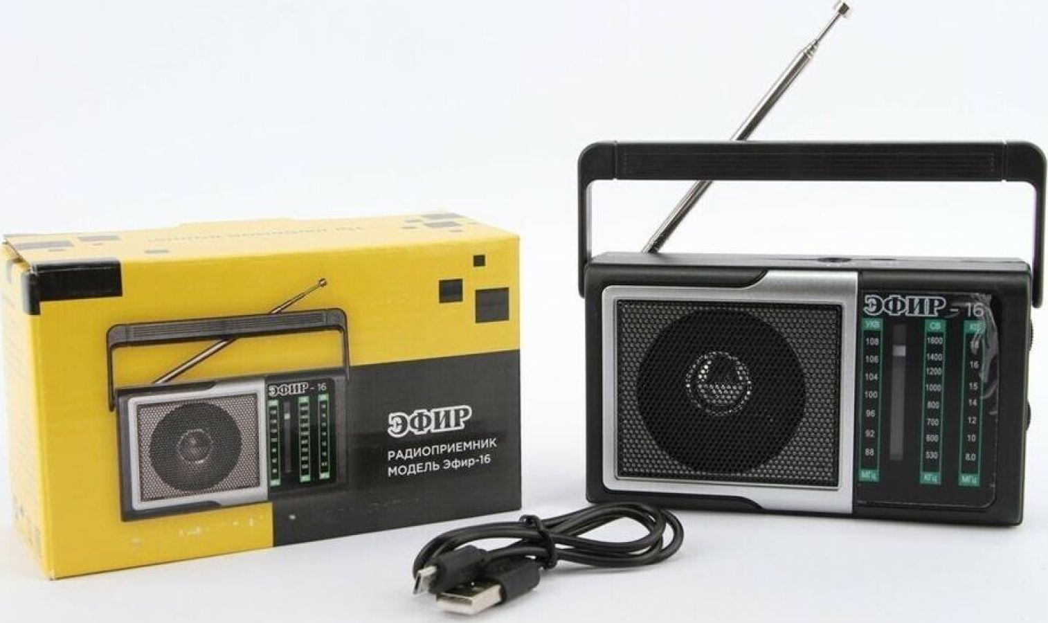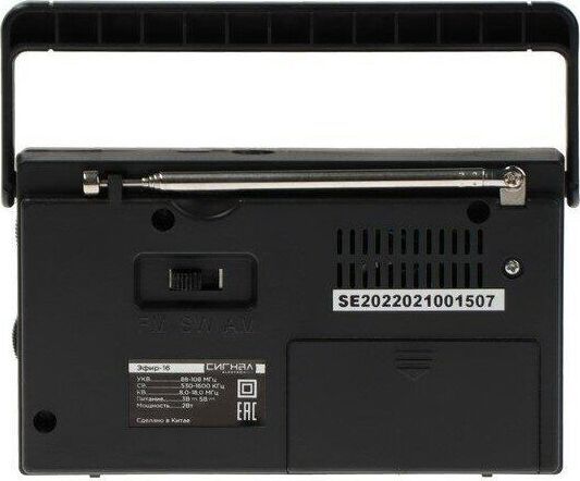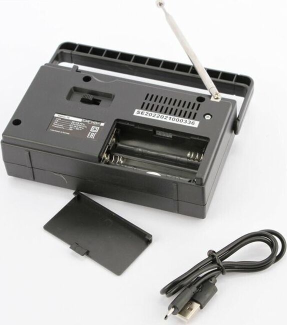 "Тип тюнера: аналоговый Диапазоны: УКВ/СВ/КВ Частоты для каждого диапазона: УКВ (88-108)МГц / СВ (530-1600)КГц / КВ (8.0-18.0)МГц Автонастройка в FM диапазоне: нет Кол-во динамиков: 1шт Мощность динамиков: 3Вт Питание: 220В / блок питания 5В Батарейки: АА*2шт, не в комплекте Аккумулятор: 500 мАч Размер: 140х41х76мм"