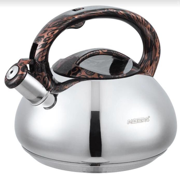 Объем: 3 л Свисток с курковым механизмом открывания Нержавеющая сталь 0.6 мм Зеркальная полировка Цельнолитой бесшовный корпус Фиксированная ручка с покрытием Soft Touch 9-ти слойное термоаккумулирующее капсулированное индукционное дно Подходит для всех видов плит, включая индукционные Вес: 1160 г