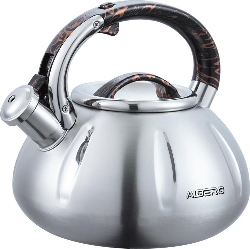 Объем: 3 л Свисток металл, с курковым механизмом открывания Нержавеющая сталь 0.6 мм Зеркальная полировка Цельнолитой бесшовный корпус Фиксированная ручка Soft Touch «Питон» 3-х слойное термоаккумулирующее капсулированное индукционное дно Подходит для всех видов плит, включая индукционные Вес чайника: 800 г