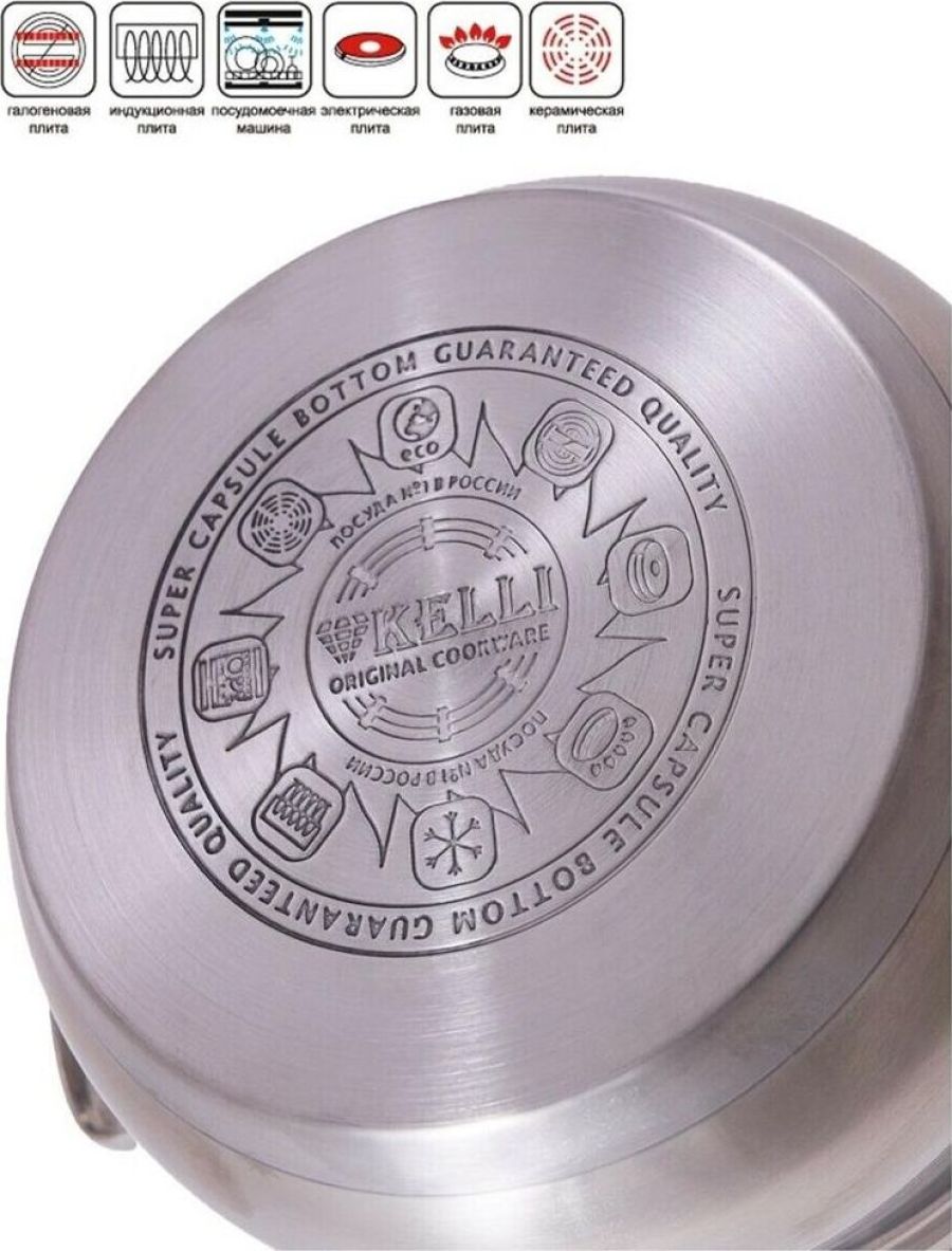 Объем 7л, с доп.кольцом/ без доп.крышки. Высококачественная нерж. сталь. 3-х слойное теплоемкое дно. Быстрое приготовление. Долго сохраняет тепло. Идеально для диетического питания. Ручки не нагреваются. Крышка из нерж. стали с клапаном...