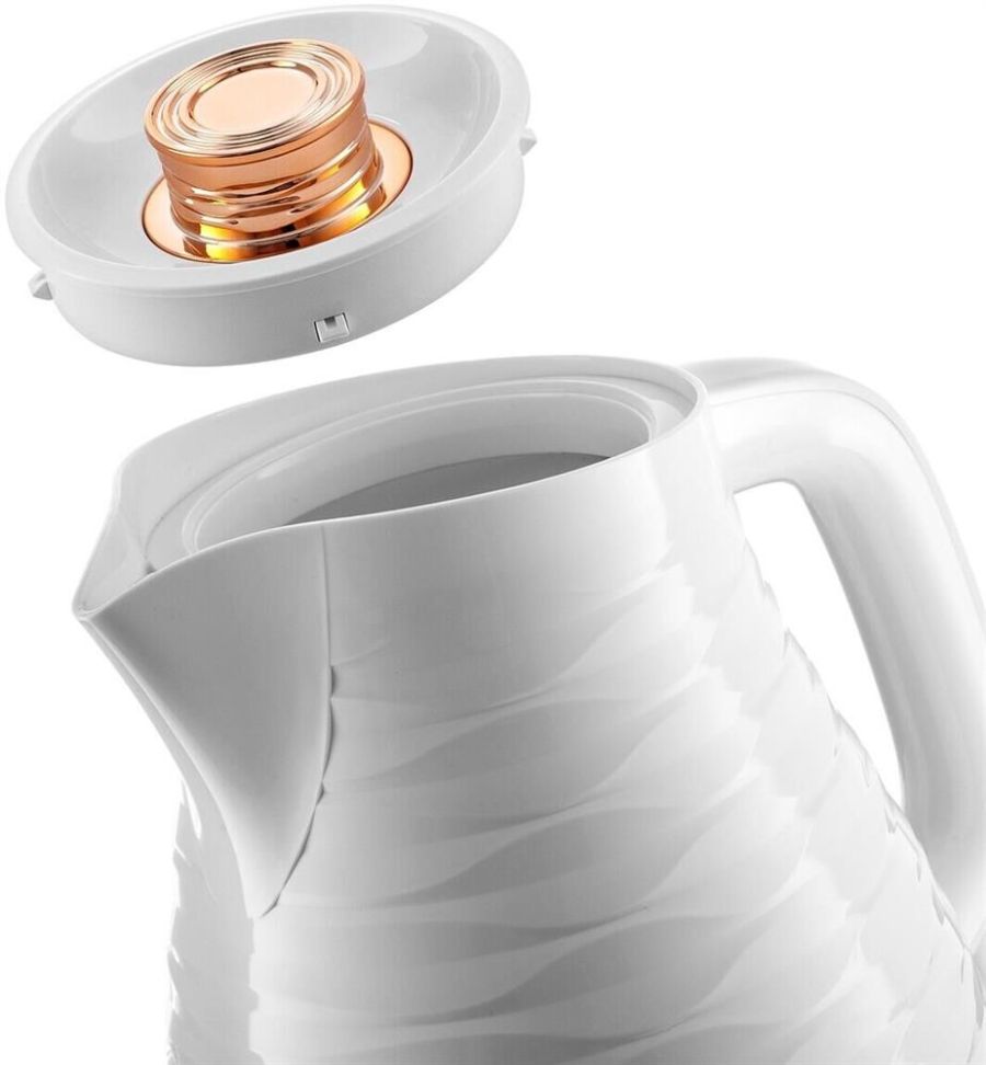 Чайник элекстрический. Мощность: 2200Вт. Объем: 1,7 литра, Материал корпуса: пластик. Фильтр от накипи. Отсек для сетевого шнура (длина шнура 0,6 метра). Крышка полностью съемная. Отключение при снятии/запипании/отсутствии воды. Индикация: включения/уровня воды. Цвет: Белый.