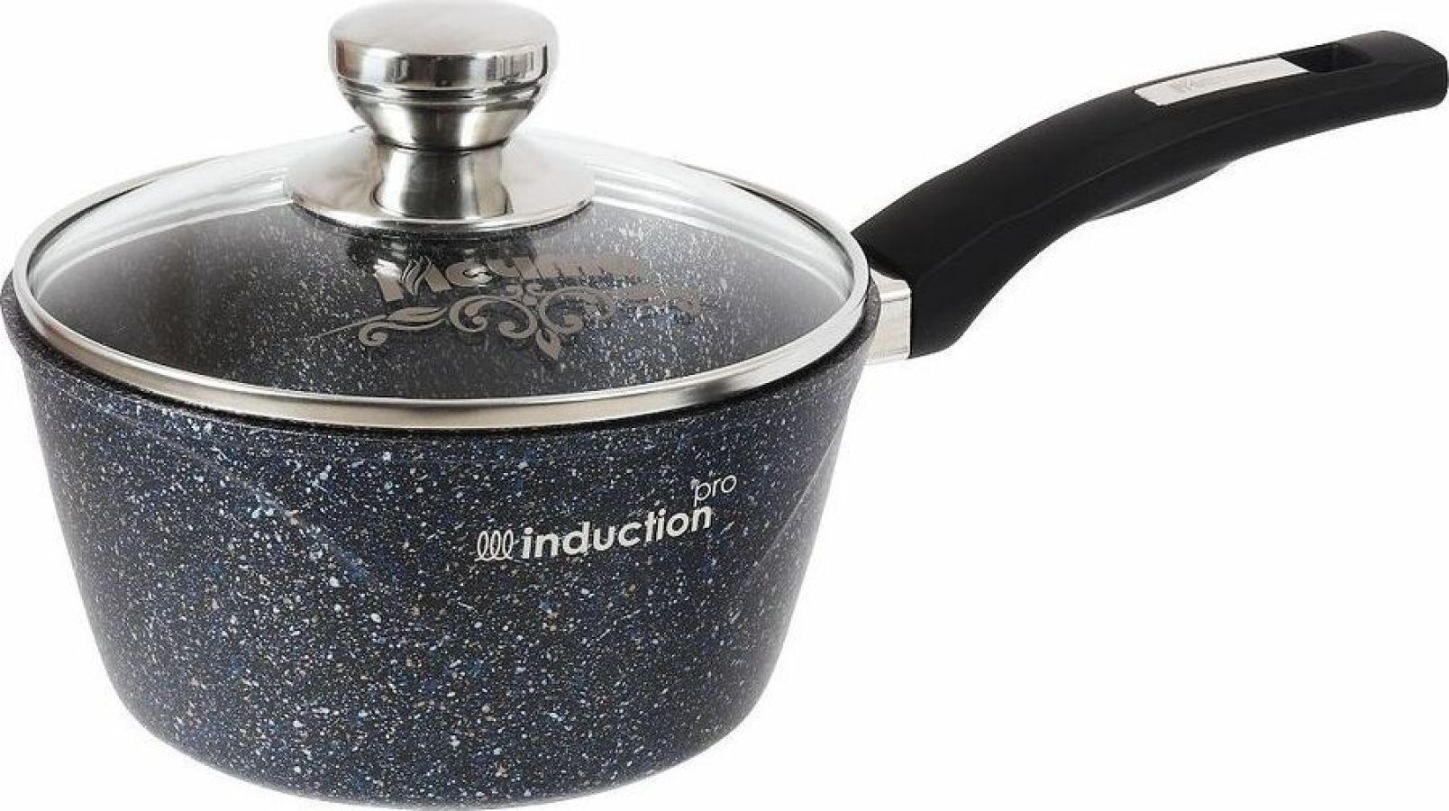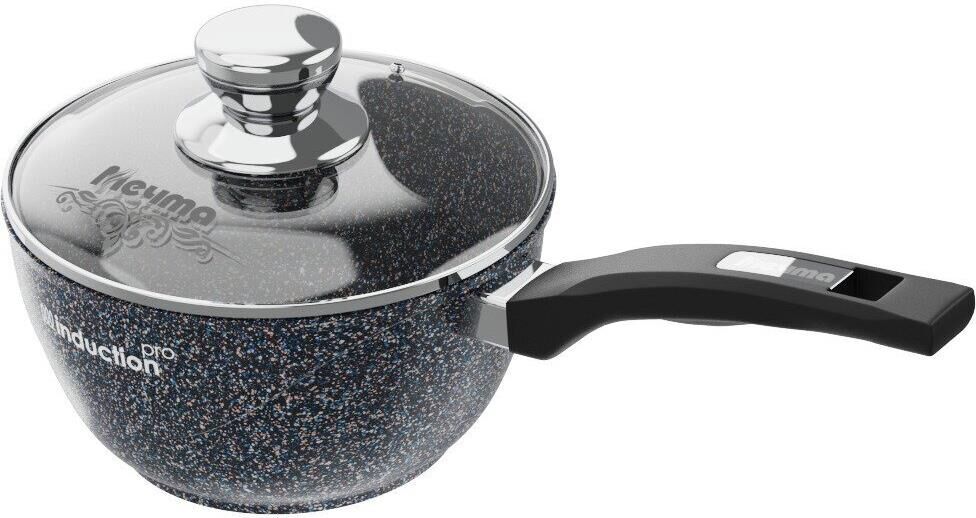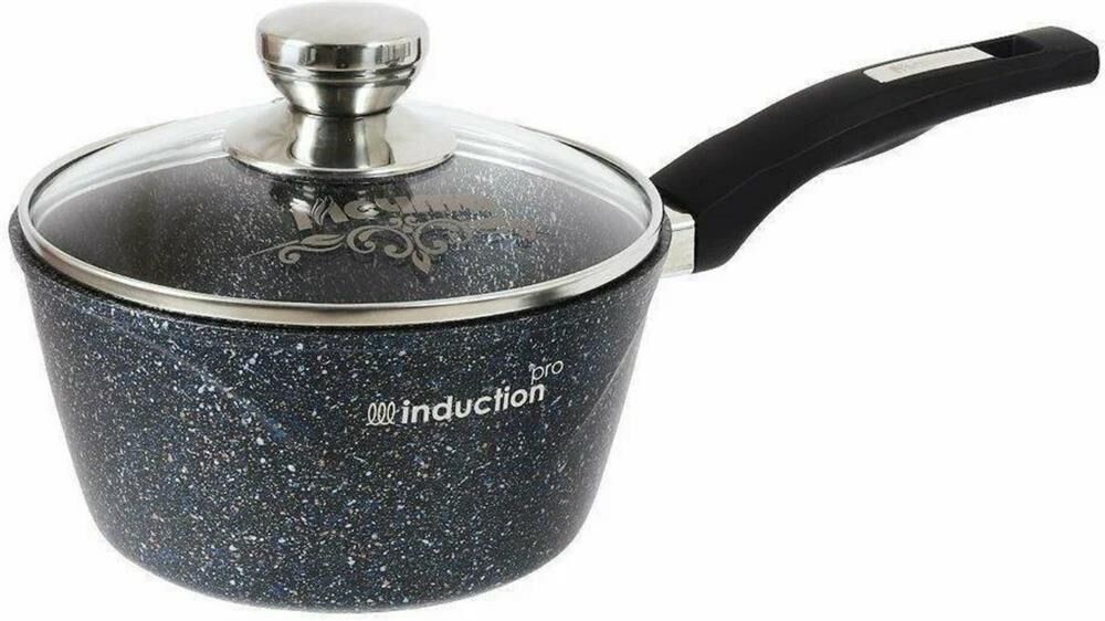 Ковш индукционный 1.7л с антипригарным покрытием, несъемной ручкой и стеклянной крышкой серии "Гранит star Induction Pro". Подходит для всех типов плит, можно использовать в посудомоечной машине.