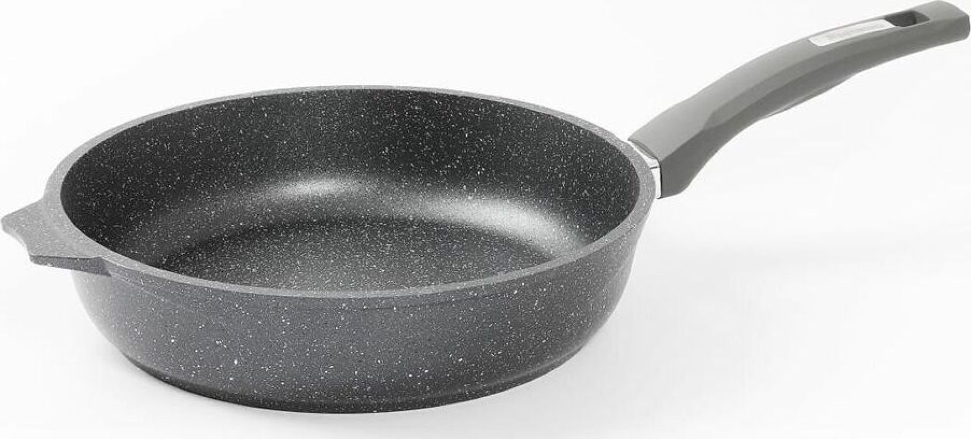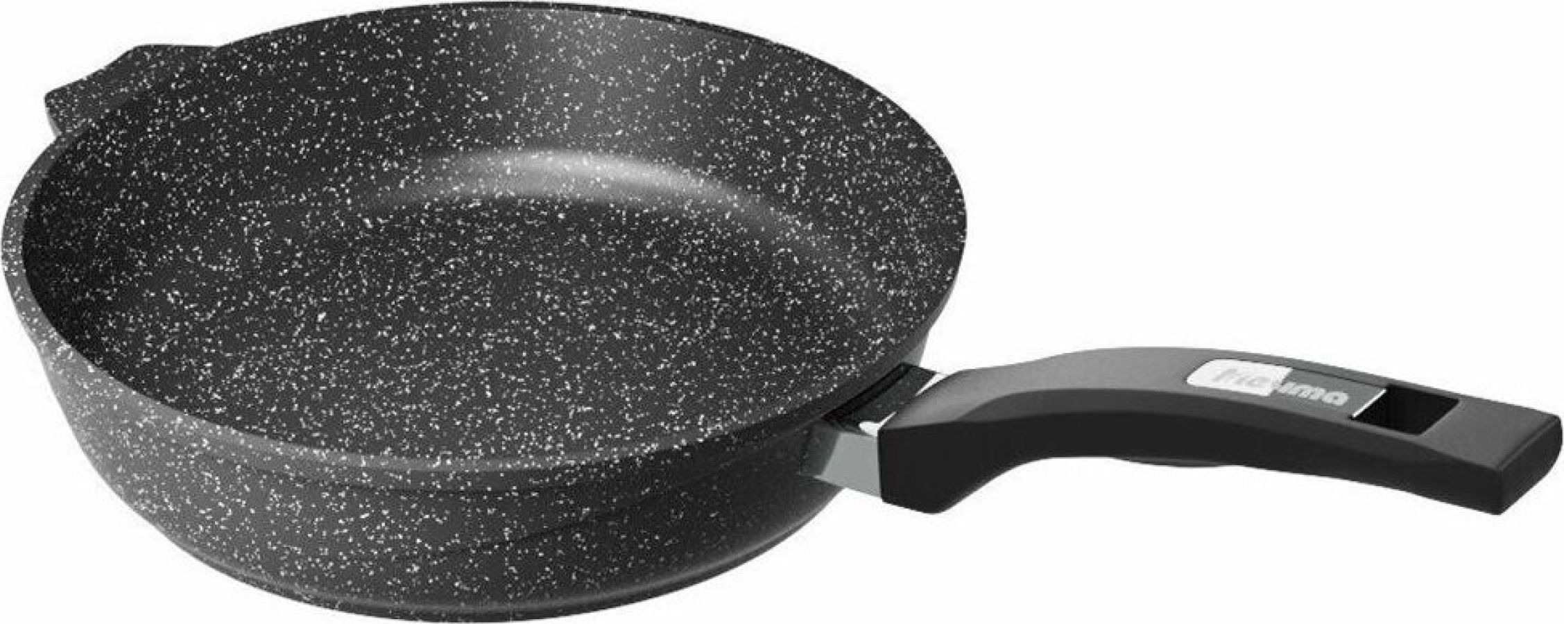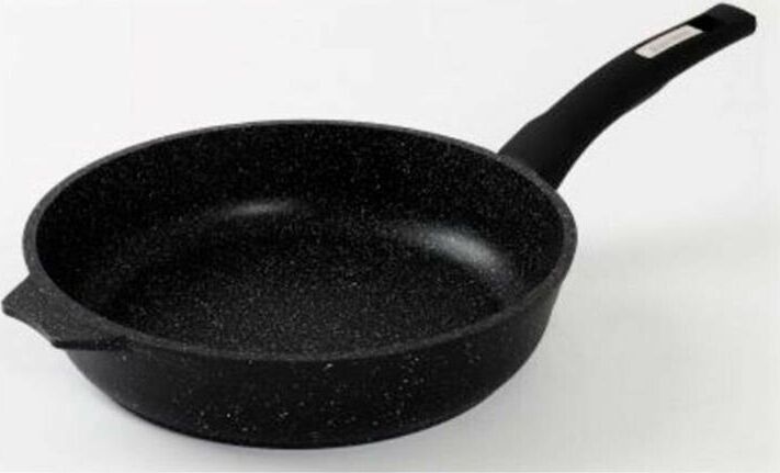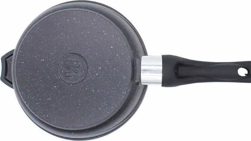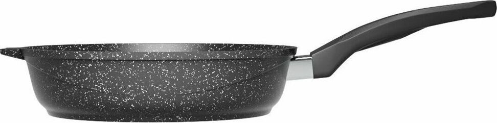 Сковорода 20 см с антипригарным покрынием и несъемной ручкой серии "Гранит black". Подходит для всех типов плит, кроме индукционных. Можно использовать в посудомоечной машине.