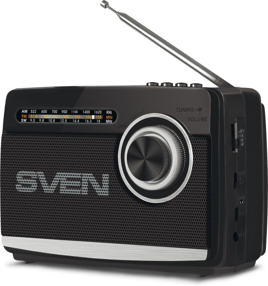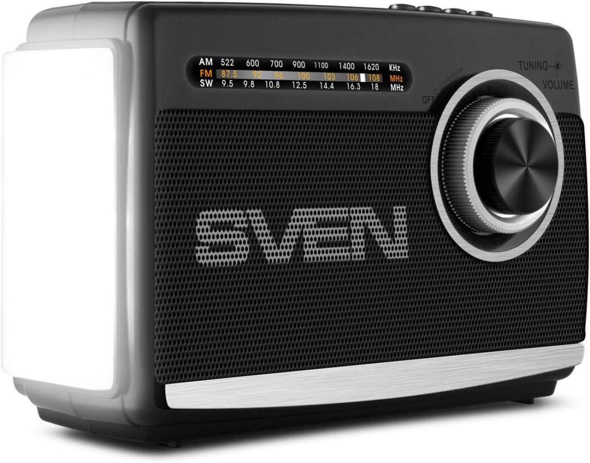 Передача сигнала по Bluetooth Встроенный литий-ионный аккумулятор (1200мАч) Воспроизведение музыки с USB flash и microSD карт памяти Прием радиосигнала в диапазоне вещания FM, AM, SW Разъем для подключения наушников Встроенный фонарь Телескопическая поворотная антенна Выходная мощность (RMS), Вт 3 Режим воспроизведения моно Частотный диапазон, Гц 150 – 20 000 Размеры динамиков, мм Ø 76 Воспроизведение музыки с носителей памяти USB, microSD Поддерживаемые аудиоформаты MP3 Источник питания литий-ионный aккумулятор: 1200мА·ч USB: DC 5 V Номинальный ток потребления, А 0,07 Длина шнура питания, м 0,8