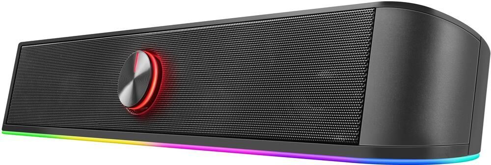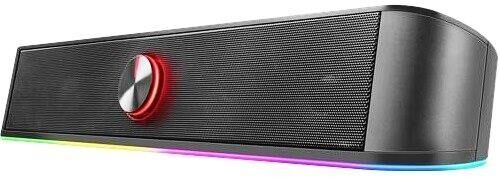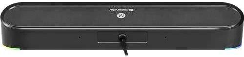 Компактный саундбар с LED подсветкой и функцией Bluetooth под монитор вашего ПК. Регулятор громкости со встроенным выключателем удобно расположен на передней панели, а на верхней панели сенсорная панель управления подсветкой и переключения режимов AUX/Bluetooth