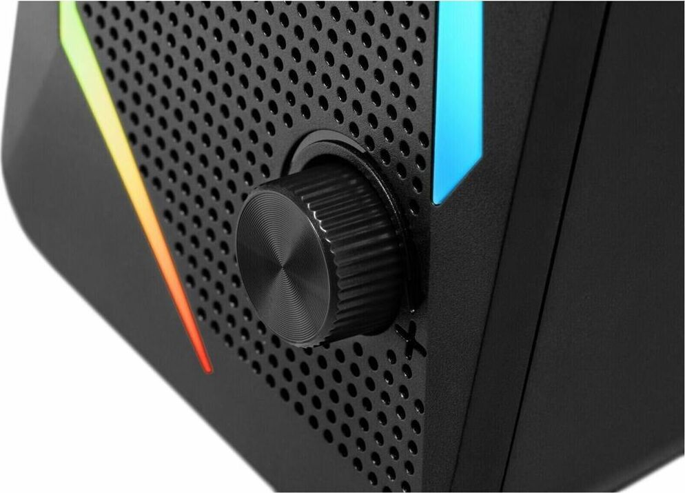 Светодиодная подсветка Регулятор громкости звука - Вам не придется переключаться на управление вашим плеером, чтобы увеличить или уменьшить звук. Регулируйте громкость одним движением Питание от порта USB - Колонки не требуют сетевого источника питания. Просто подключите колонки к USB-разъему компьютера и наслаждайтесь звуком. Данная модель оборудована интегрированной звуковой картой, поэтому не требует подключение к аудио разъему компьютера Выключатель питания