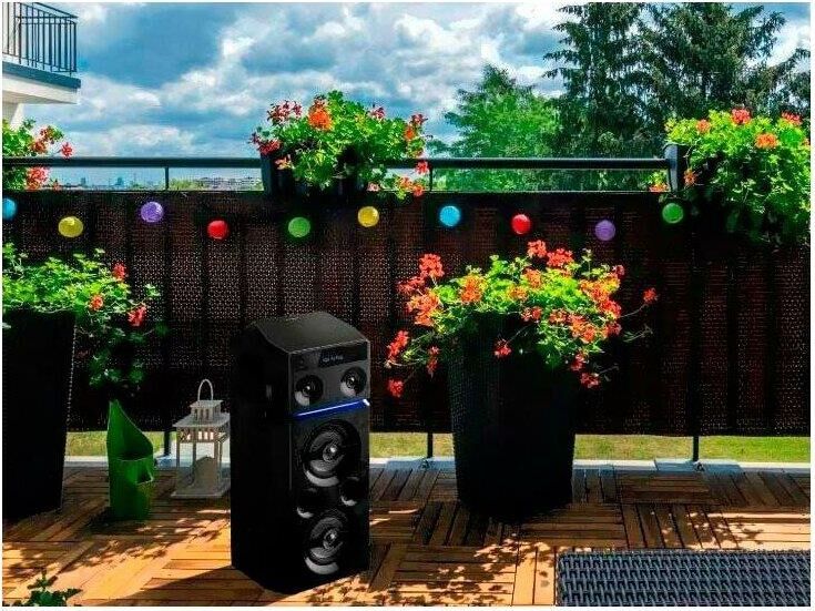 Cуммарная мощность 300 Вт (RMS). ЖК-дисплей есть. Поддерживаемые аудио форматы MP3. Эквалайзер есть. Радио. Тюнер FM есть. Разъем USB есть. Количество разъемов USB 2. Разъем подключения наушников 3.5мм. Микрофонный вход есть. Разъем AUX есть. Караоке есть. Поддержка iPod. Поддержка Bluetooth. Пульт ДУ в комплекте. Потребляемая мощность 51 Вт. Цвет черный Материал основного блока MDF/пластик Материал колонок MDF/пластик. Размеры (основной блок) 265 х 606 х 272 мм.. Вес (общий) 8 кг.