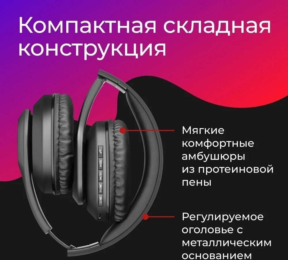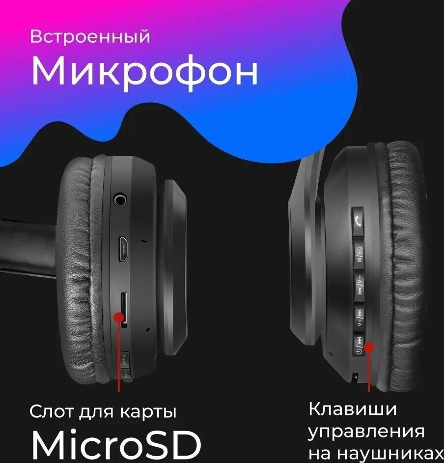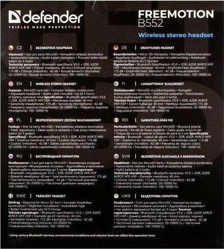 Гарнитура беспроводная, Bluetooth, чувствительность (наушники) - 115 дБ, чувствительность (микрофон) -42 дБ, частотный диапазон (наушники) - 20–20000 Гц, частотный диапазон (микрофон) - 100–16000 Гц, емкость аккумулятора - 200 мА·ч, время работы в режиме разговора / прослушивания музыки - 10 час, разъемы Micro-USB для зарядки батареи, встроенный микрофон, слот для карты MicroSD, встроенный FM-приемник, клавиши управления на наушниках, регулируемое оголовье, складная конструкция, радиус действия - 10 м.