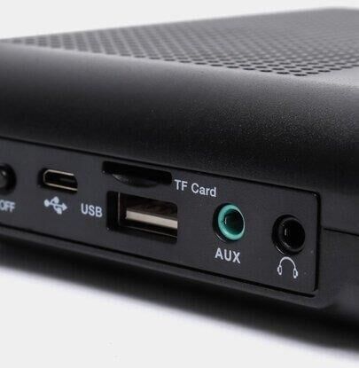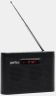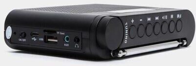 Радиоприемник в классическом корпусе имеет стильный внешний вид, удобное колесико-регулятор радиоволны и кнопки управления на верхней грани устройства. Поворотная телескопическая антенна принимает сигнал в 2-х самых популярных диапазонах (УКВ и FM), также предусмотрена возможность выборочного запоминания 10 станций. Есть встроенный MP3-плеер, который воспроизводит MP3-файлы с карты памяти microSD или USB-накопителя. Аудиовход AUX, разъем для наушников и поддержка режима USB-аудио расширяют функционал приемника. Диапазон воспроизводимых частот: 90–18000 Гц. Выходная мощность: 3+3=6 Вт (RMS). Аккумуляторная батарея: встроенная 1800 мАч (питание от USB). FM-радио: 65,9–74 УКВ / 87,5–108 FM. Габаритные размеры: 140х33х100 мм. Вес: 270 г.