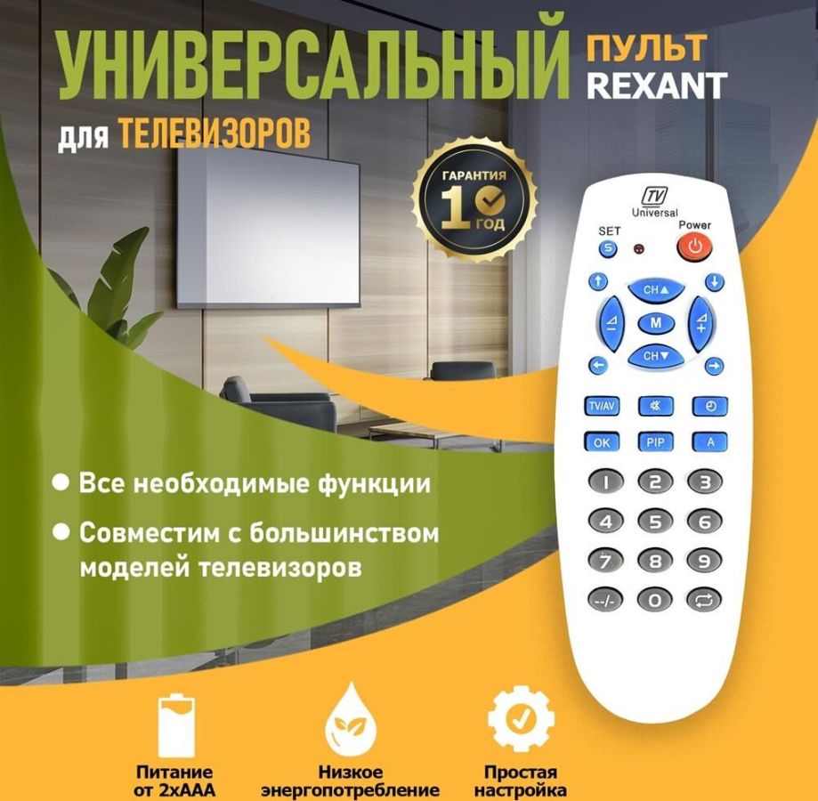 Универсальный пульт для ТВ, отличается простотой в использовании и совместим с большинством марок и моделей современных телевизоров. Универсальный пульт поддерживает такие функции, как: меню, настройки, стандартные настройки, субтитры, канал, громкость, язык и т. д., что обеспечивает максимально полное и удобное управление телевизором. Имеет низкое энергопотребление, удобен и прост в настройке.