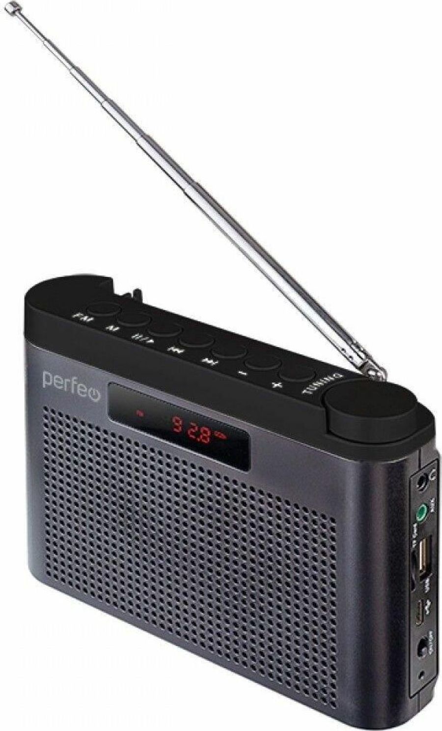 Радиоприемник в классическом корпусе имеет стильный внешний вид, удобное колесико-регулятор радиоволны и кнопки управления на верхней грани устройства. Поворотная телескопическая антенна принимает сигнал в 2-х самых популярных диапазонах (УКВ и FM), также предусмотрена возможность выборочного запоминания 10 станций. Есть встроенный MP3-плеер, который воспроизводит MP3-файлы с карты памяти microSD или USB-накопителя. Аудиовход AUX, разъем для наушников и поддержка режима USB-аудио расширяют функционал приемника. Диапазон воспроизводимых частот: 90–18000 Гц. Выходная мощность: 3+3=6 Вт (RMS). Аккумуляторная батарея: встроенная 1800 мАч (питание от USB). FM-радио: 65,9–74 УКВ / 87,5–108 FM. Габаритные размеры: 140х33х100 мм. Вес: 270 г.