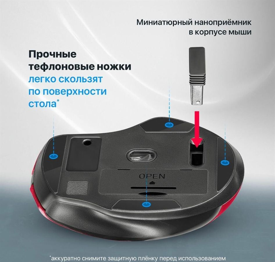 Тип подключения: беспроводной Интерфейс подключения: USB Количество кнопок: 5 + колесо-кнопка Тип сенсора: оптический Разрешение сенсора мыши, DPI: 800 / 1200 / 1600 Разрешение: 800/1200/1600 dpi Минимальное значение DPI: 800 dpi Максимальное значение DPI: 1600 dpi Количество нажатий: 5 миллионов Бесшумные кнопки: есть Тефлоновые ножки: есть Питание: 1 × AA Цвет: красный ROHS / CE: Да Радиус действия: 0–10 м Масса индивидуальной упаковки: 0.09 кг Масса без упаковки: 0.06 кг Размеры без упаковки: 7.1 x 4.0 x 10.9 см Системные требования для ПК: Windows 2000/XP/Vista/7/8/10 и выше, Mac OS X10 Гарантийный срок: 6 месяцев