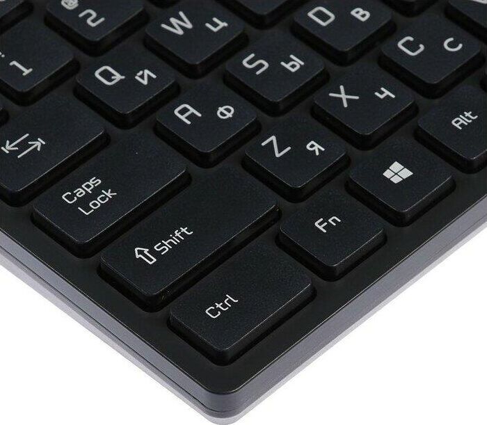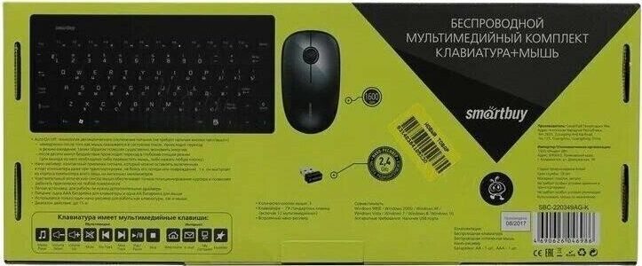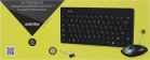 Набор беспроводной (клавиатура+мышь), клавиатура - количество клавиш - 79, низкопрофильные, 12 клавиш отвечают за мультимедиа и выход в сеть; мышь - оптическая, свтодиодная, количество клавиш - 3, разрешение - 1600 dpi, радиус действия - до 15 м.