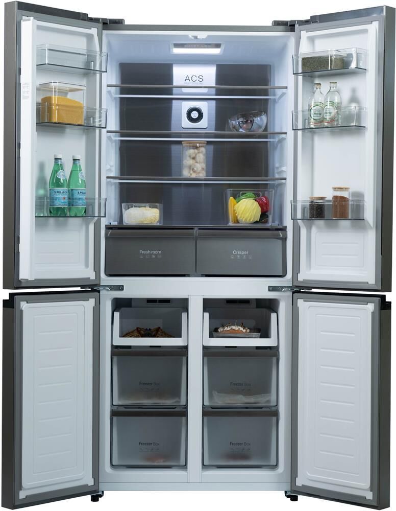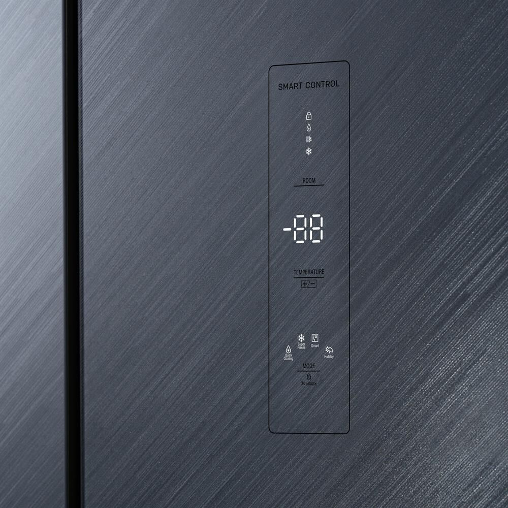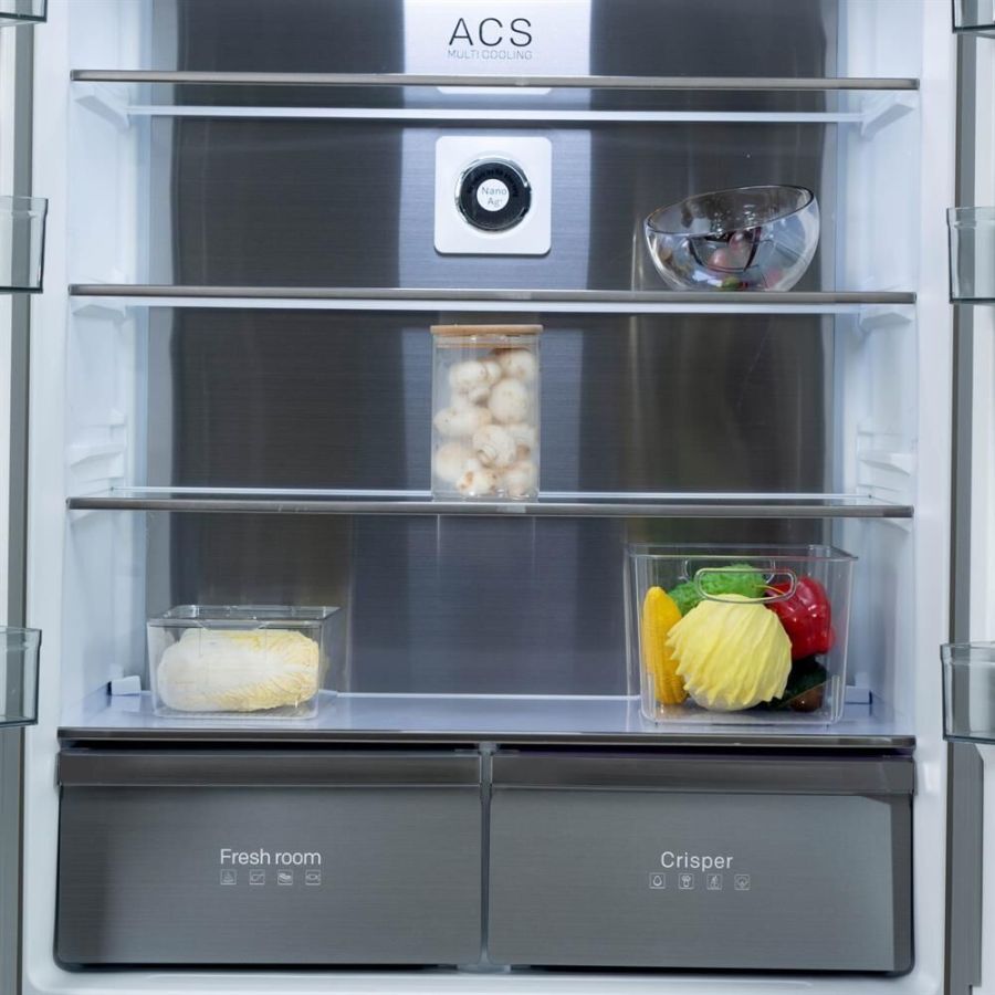 Многокамерный холодильник с текстурированным серым стеклом; Система Full No Frost; Dual Inverter: инверторные компрессор и вентилятор; Класс энергоэффективности: А++; Система распределения воздушных потоков MultiFlow; Технология охлаждения Metal Cooling; Деодорирующий фильтр Nano Ag+; Габариты: 189x83,3x66см; Объем: 496/334/162л