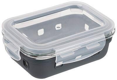 Контейнер MASSIMO, 370 мл, из жаропрочного стекла с крышкой с защёлками в силиконовой подставке Объем: 370 мл/Размер: 16,1*11,9*6,5 см. Толщина стекла - 4,5 мм Материалы: боросиликатное стекло, пластмасса, силикон. Подходит для использования в духовом шкафу (без крышки), микроволновке, морозилке, холодильной камере, можно мыть в посудомоечной машине. Нельзя использовать на газовых плитах, открытом огне. Контейнер выдерживает температуры от минус 40 до плюс 300 С без резких перепадов. Упаковка: цветной стикер + термоусадка.