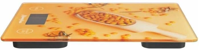 Стеклянная поверхность 20 * 15 см LCD дисплей (без подсветки) Максимальная нагрузка 7 кг Сенсорное управление Выбор единицы измерения: грамм, килограмм, фунт, мл Цена деления 1 грамм Функция "Тара" Автоотключение Проризиненные ножки Индикатор перегрузки и заряда батареи Питание от батарейки 1*CR2032 (3В), входит в комплект Напряжение: 3 В Состав: стекло, пластмасса.