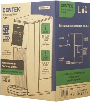 Объем 3,6л. Мощность 900Вт. Три режима подачи воды: автоматический, ручной, нажатием чашки. Внутренний резервуар из нержавеющей стали. Защита от включения без воды. Шкала-индикатор уровня воды.