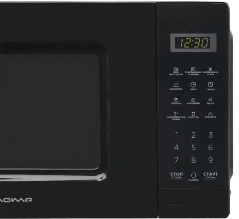 Объем камеры: 20 литров Номинальная мощность: 700 Вт Отдельностоящая Тип управления: электронный Цвет корпуса: черный Размеры (Ш х Г х В): 440х360х260 мм Масса: 10,5 кг Режимы работы: «Микроволны», размораживание, «Автоменю», подогрев 11 уровней микроволновой мощности Функции: часы, «Таймер», «Память», защитная блокировка Подсветка камеры печи Размораживание по времени и весу