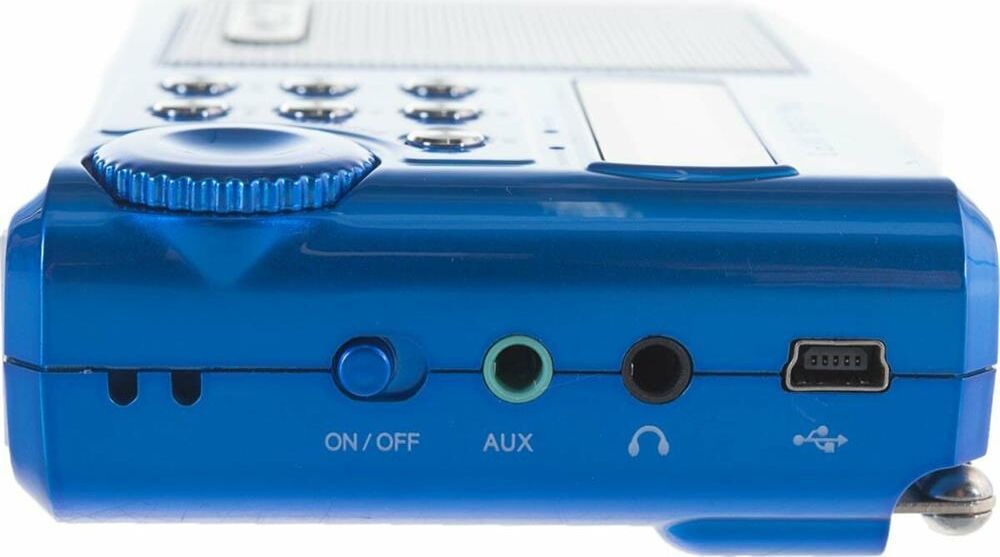 Мини-аудиосистема, диапазон воспроизводимых частот - 90 - 18000 Гц, в, выходная мощность3 Вт (RMS), поддержка УКВ и FM, выдвижная антенна, радиочип 8035, сменный аккумулятор на 12-15 часов автономной работы, пассивный сабвуфер BassBooster, поддержка USB-аудио, выборочное удаление станций из памяти, эквалайзер и три режима повтора для MP3, а также умеет работать как внешняя USB-колонка с цифровой передачей звука.