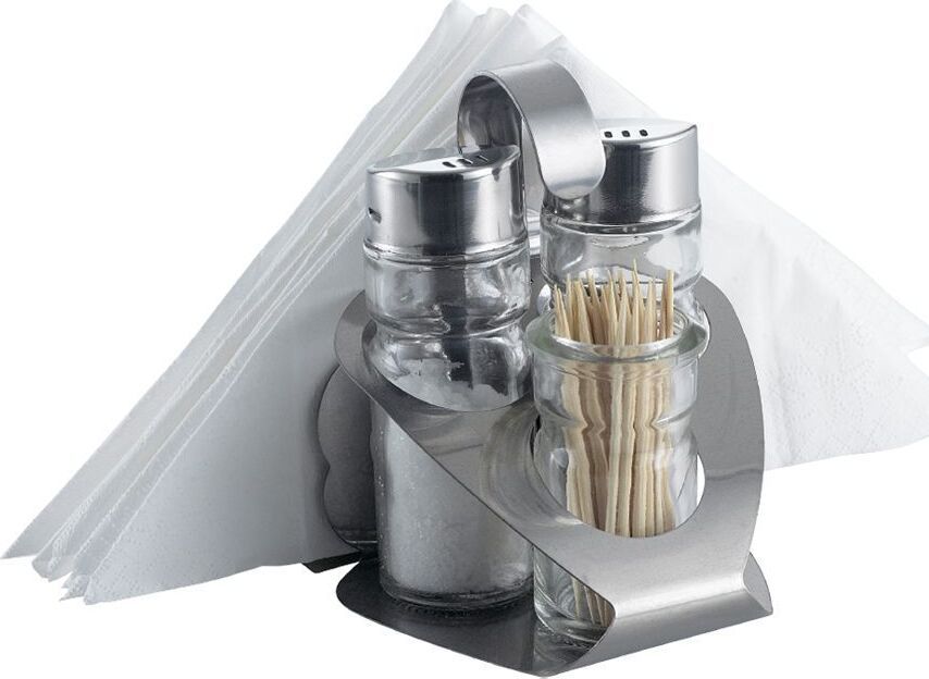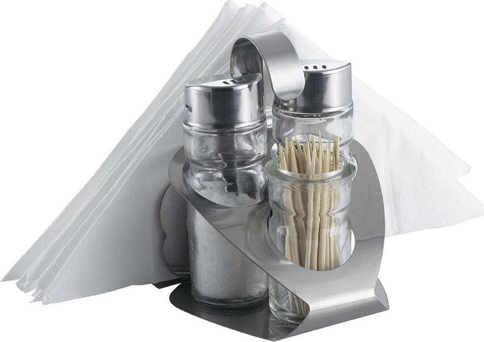 Набор для специй ZEIDAN Z-11041 4 предмета, Набор для специй с салфетницей и ёмкостью для зубочисток, 4 предмета. Высококачественная нержавеющая сталь и стекло, объем ёмкостей - 40 мл. Подарочная упаковка.