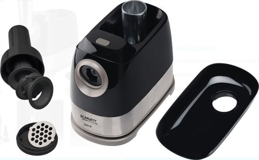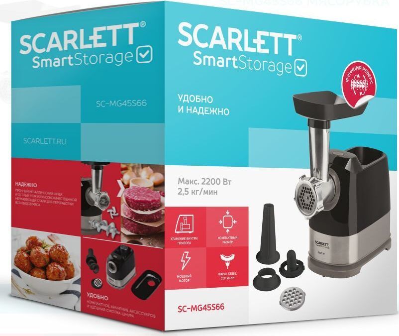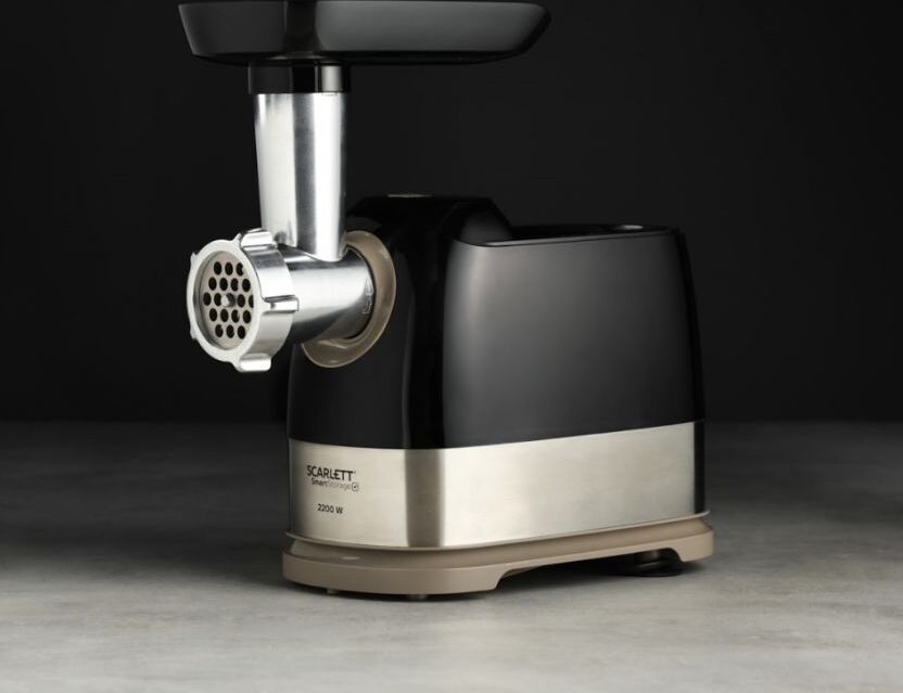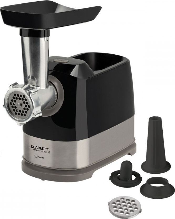 Высокая мощность мотора позволяет мясорубке производить фарш со скоростью 2,5 кг в минуту. Вы сможете и быстро приготовить мясное блюдо на обед, и заготовить полуфабрикаты впрок для хранения в морозилке. В комплект входят два диска для фарша с отверстиями диаметром 5 и 7 мм, что позволит выбрать оптимальную текстуру для различных блюд: от тефтелей до бифштексов. Внесите разнообразие в рацион при помощи насадок для кеббе и домашних колбасок. Управление очень простое: одна кнопка включает и выключает устройство, а также запускает реверс. Он пригодится, если на шнек намотаются мясные волокна и жилки, и избавит вас от необходимости прерываться для разборки и чистки прибора. Металлическая «голова» прибора удобно складывается в его корпус. Пластиковые насадки и запасной диск хранятся в толкателе, есть также отсек для сетевого шнура. Прорезиненные ножки прочно удержат прибор и не позволят ему упасть со стола.