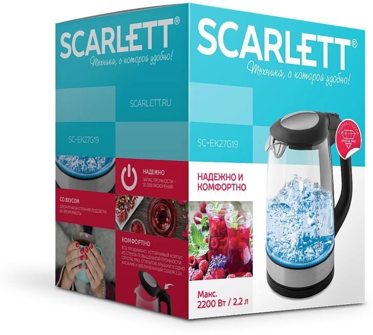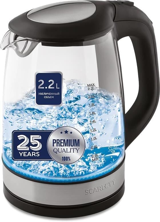 Мощность, Вт: 2200 Объем, л: 2.2 Способ открывания крышки: Автоматическое открытие крышки Индикатор уровня воды: Да Отсек для хранения электрошнура: Да Материал корпуса: Стекло Фильтр: Да Индикатор работы: Голубая светодиодная подсветка Вид/марка стекла: CRYSTAL PRO Длина электрошнура, м: 0.7 Система многоуровневой безопасности «Safe Work»: Да Цвет: Черный