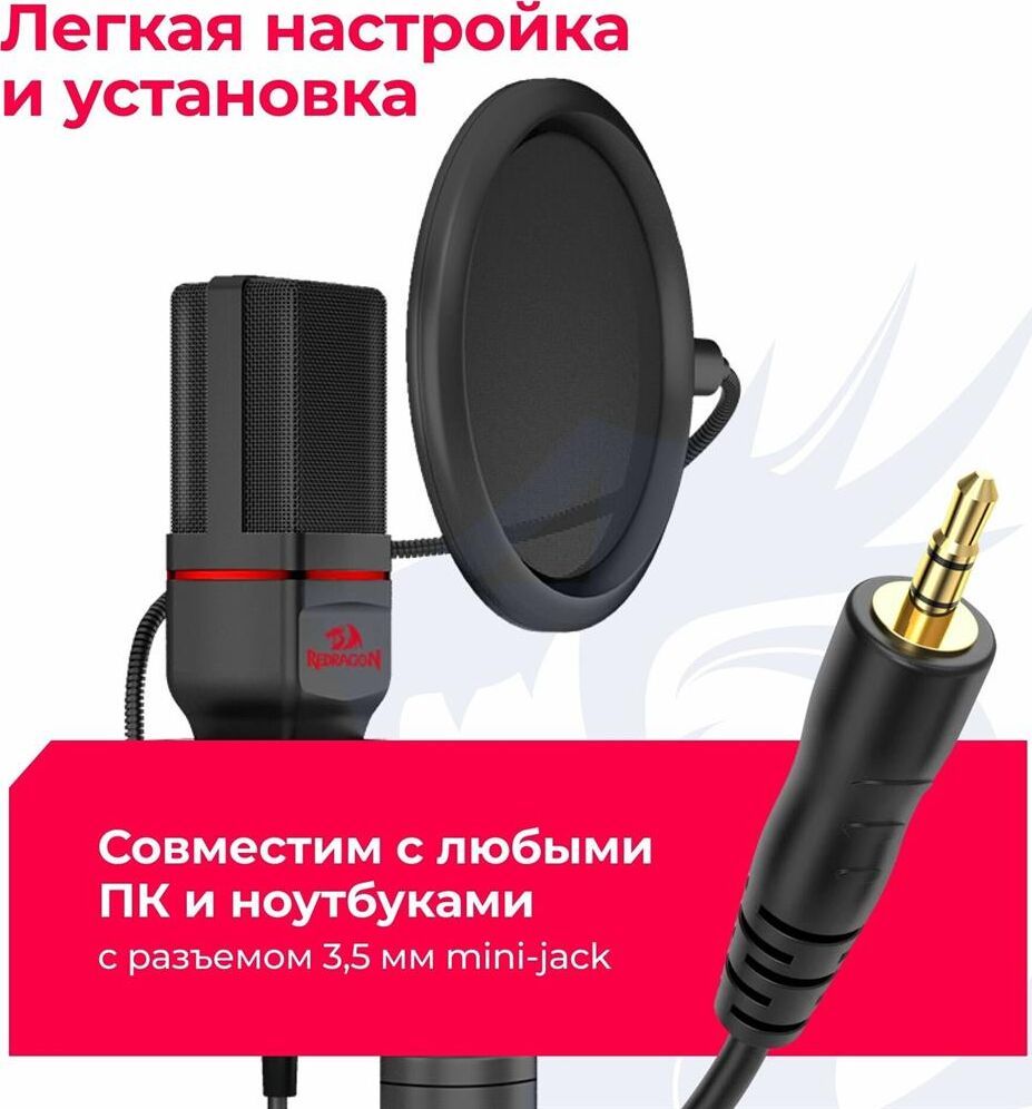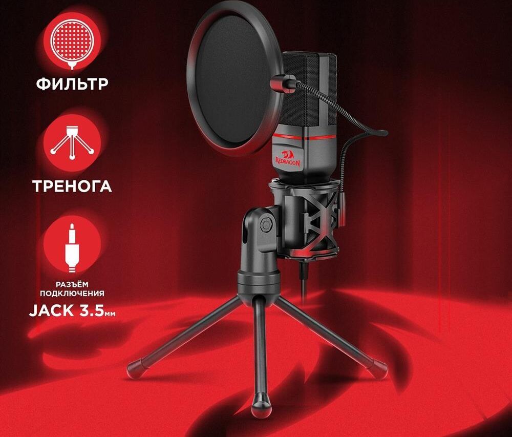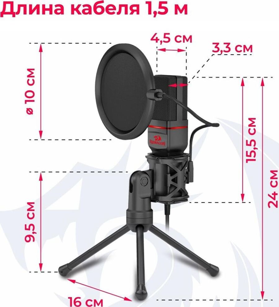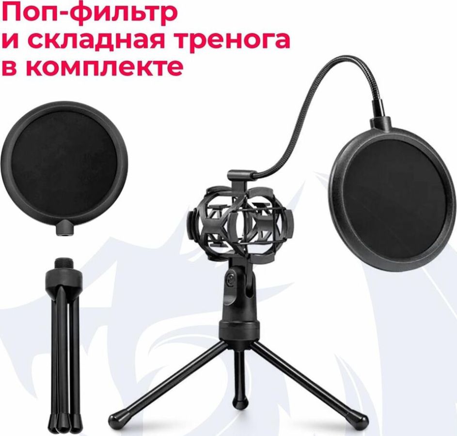 Игровой стрим микрофон+тренога+поп-фильтр, проводной, диаметр мембраны 9.7 мм, частотный диапазон - 30–16000 Гц, разъемы - 3,5-мм джек, импеданс 2.2 кОм, чувствительность 47 дБ, идеально подойдет для стримов и записи видео на YouTube, Twitch и других платформах, легкая компактная конструкция, простое подключение, длина кабеля - 1.5 м.