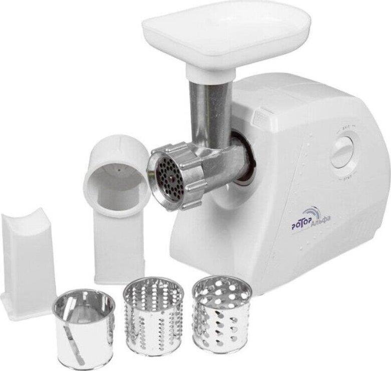 Мощность 1500Вт. Тип мясорубки шнековый. Производ-ть при пригот-и фарша не менее 35 кг/ч. Габариты: 245х151х213 мм.