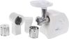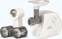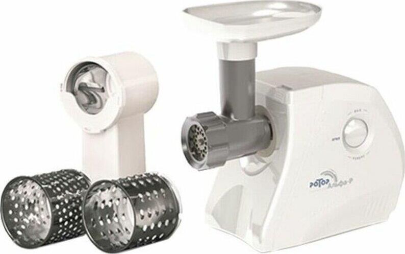 Мощность 1500Вт. Тип мясорубки шнековый. Производ-ть при пригот-и фарша не менее 35 кг/ч. Габариты: 245х151х213 мм. Комплектация: мясорубка + малая овощерезка.
