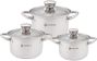 Набор посуды, 6 предм. (3 КАСТРЮЛИ С КРЫШКАМИ: 1,9 Л ( d16 см ), 2.6 Л (d18 см ), 3.6 Л (d20 см ), нержавеющая сталь, 3-х СЛОЙНОЕ КАПСУЛИРОВАННОЕ ИНДУКЦИОННОЕ ДНО, крышки - стекло, матовая полировка снаружи, зеркальная полировка внутри.