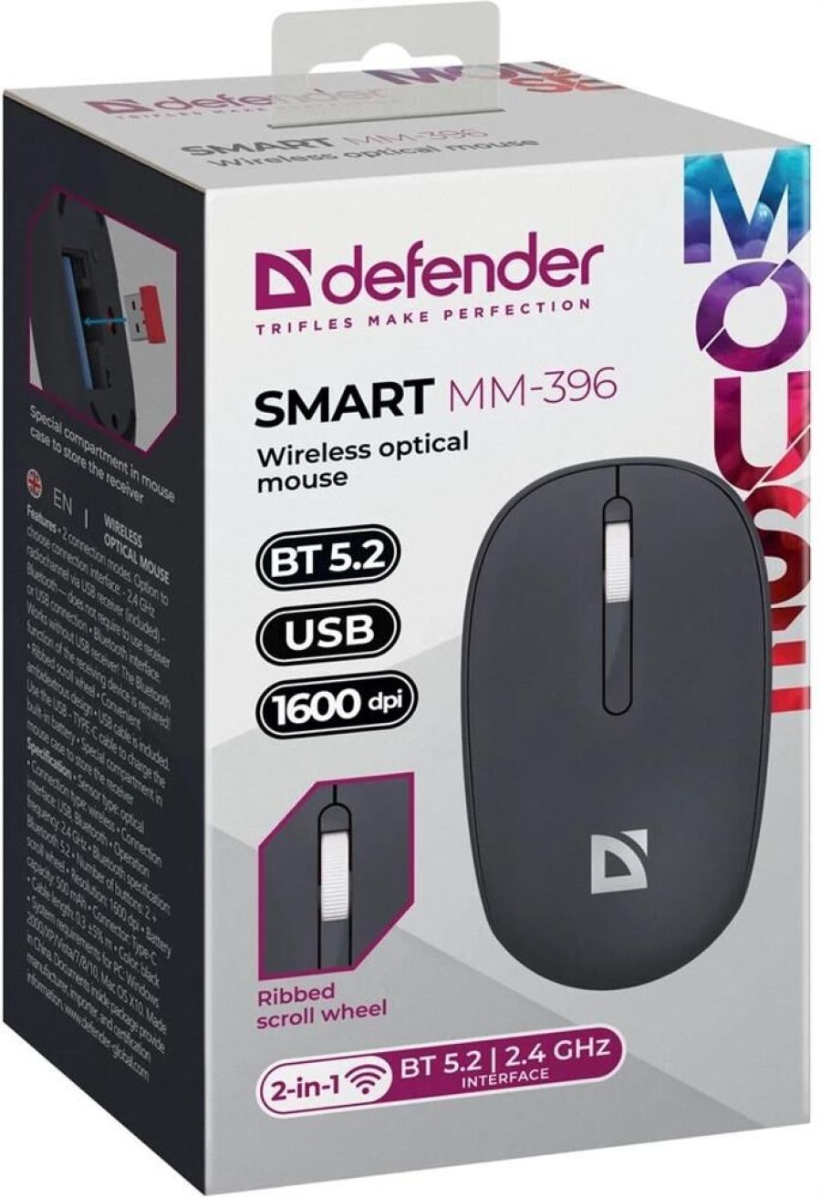 Мышь беспроводная, Bluetooth 5.2 Рабочая частота 2.4 ГГц Радиус действия 15 м Количество кнопок 2 + колесо-кнопка Разрешение сенсора мыши, DPI 1600 Минимальное значение DPI 1600 dpi